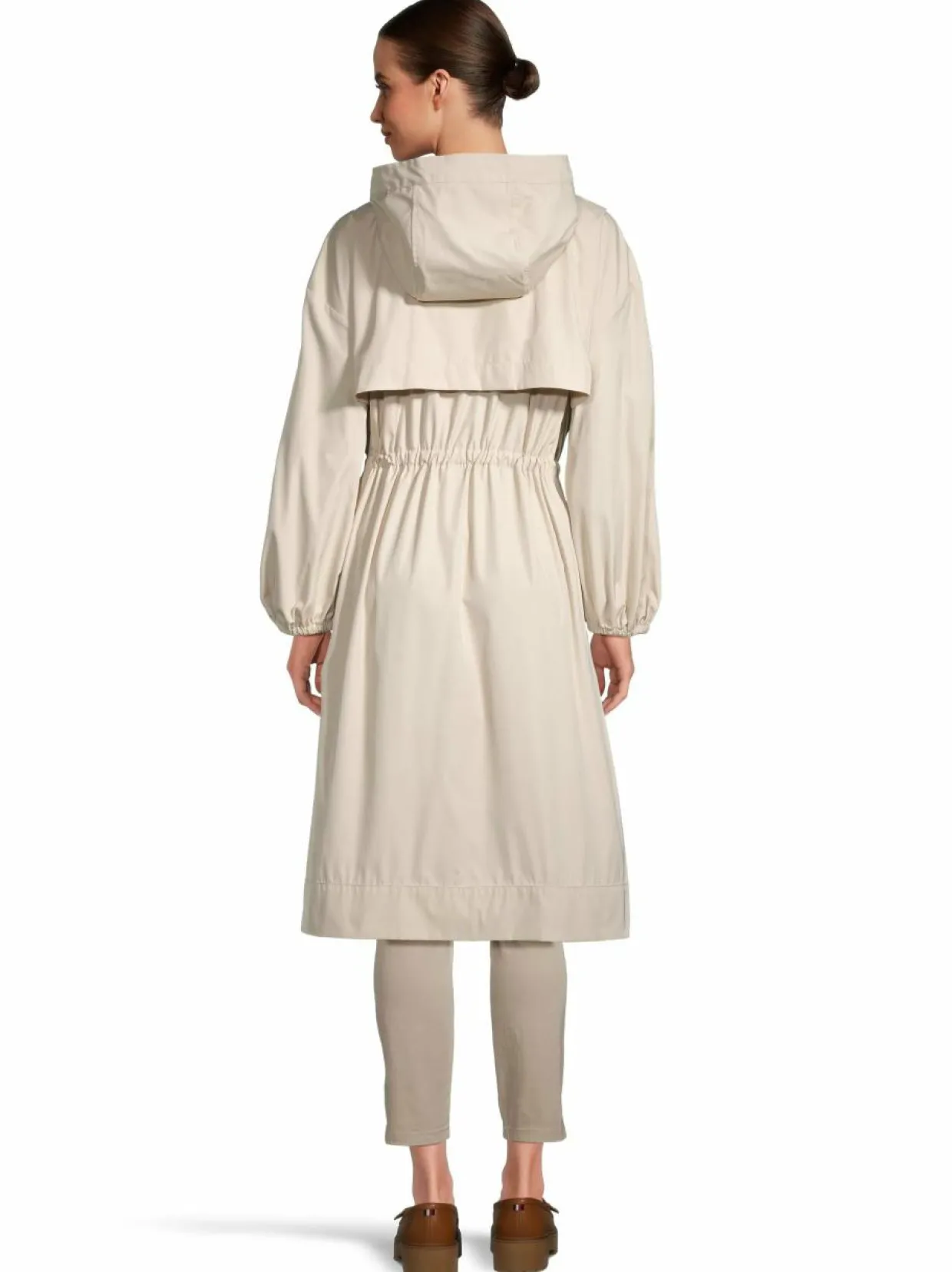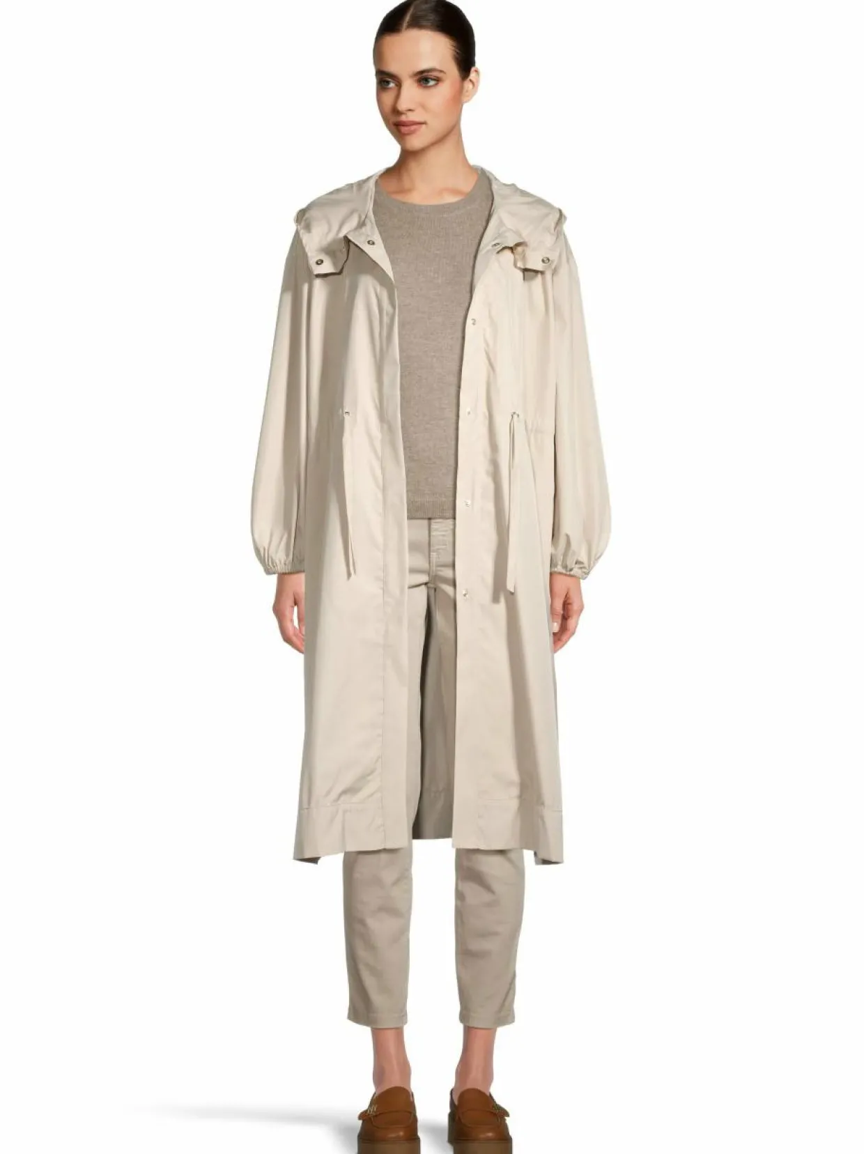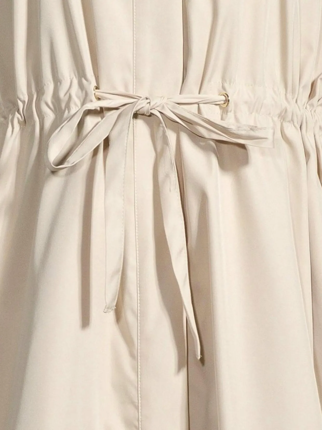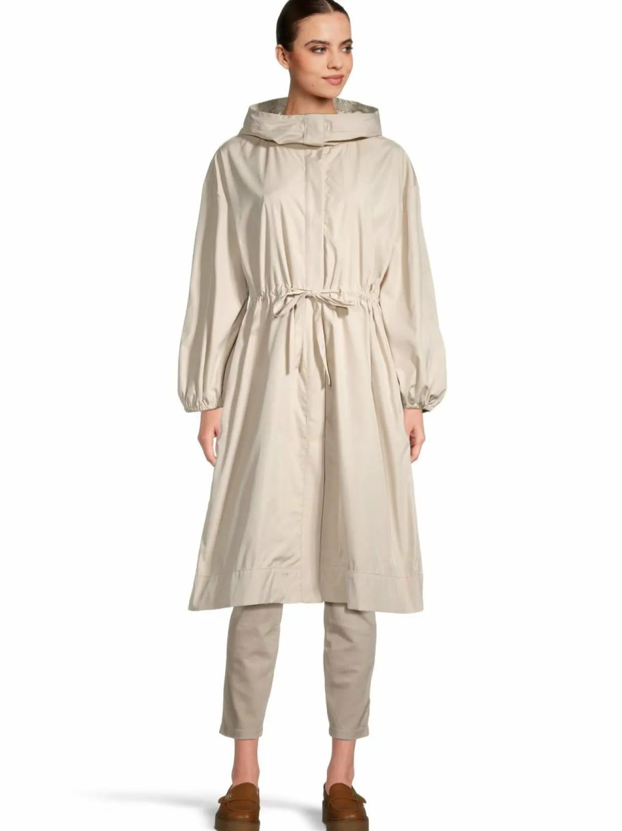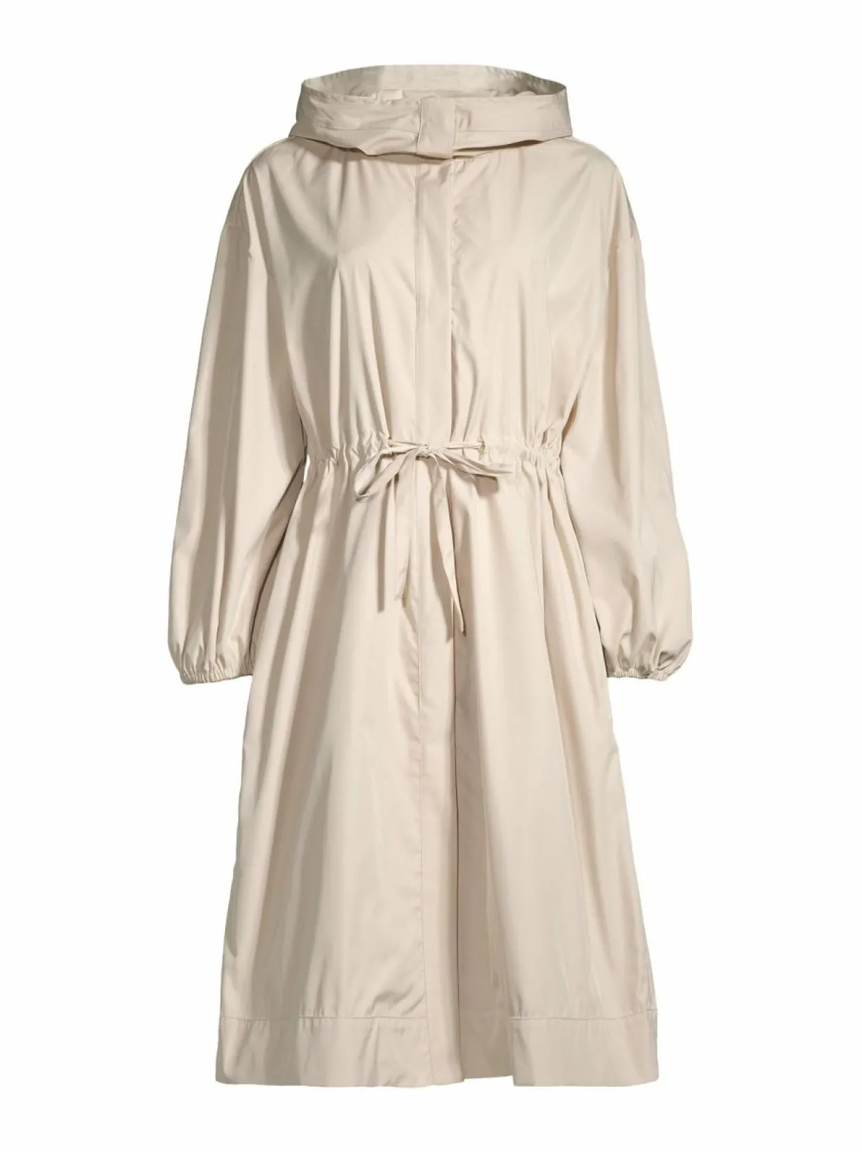 Emme Marella vaatemerkin Pasqua-takki on suunniteltu mukavaan istuvuuteen. Siinä on kiinteä huppu, piilotettu nepparisulku ja kiristysmahdollisuus vyötäröllä. Hartialinja on madallettu rennon siluetin korostamiseksi. Tämä takki sopii erinomaisesti välikauteen.