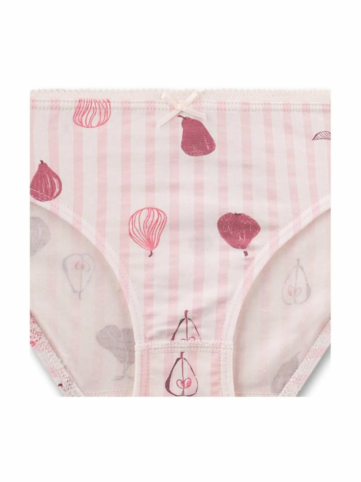 Pehmeästi istuvat alushousut, joissa on hedelmäkuviointi ja raidoitus. Materiaali on miellyttävän tuntuista ihoa vasten. Alushousut sopivat täydellisesti päivittäiseen käyttöön ja ne tarjoavat ihanteellisen mukavuuden.