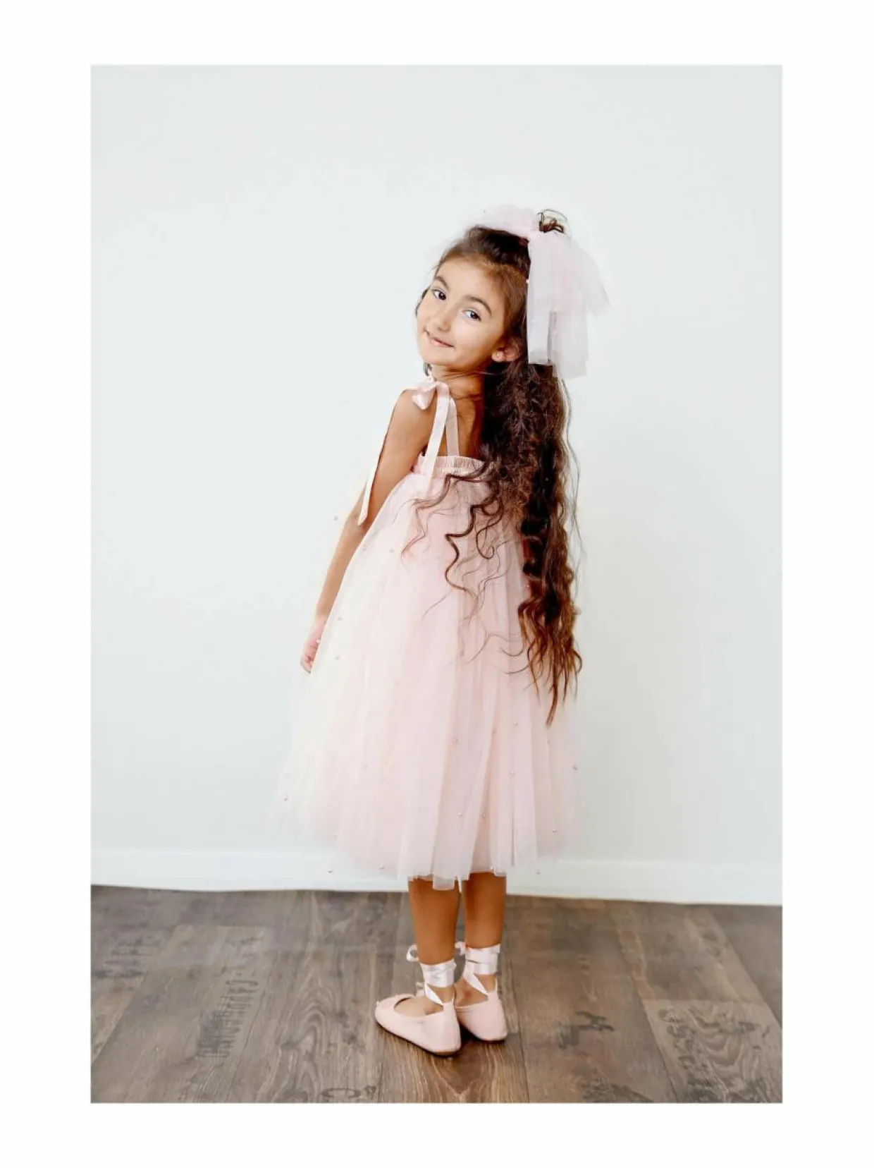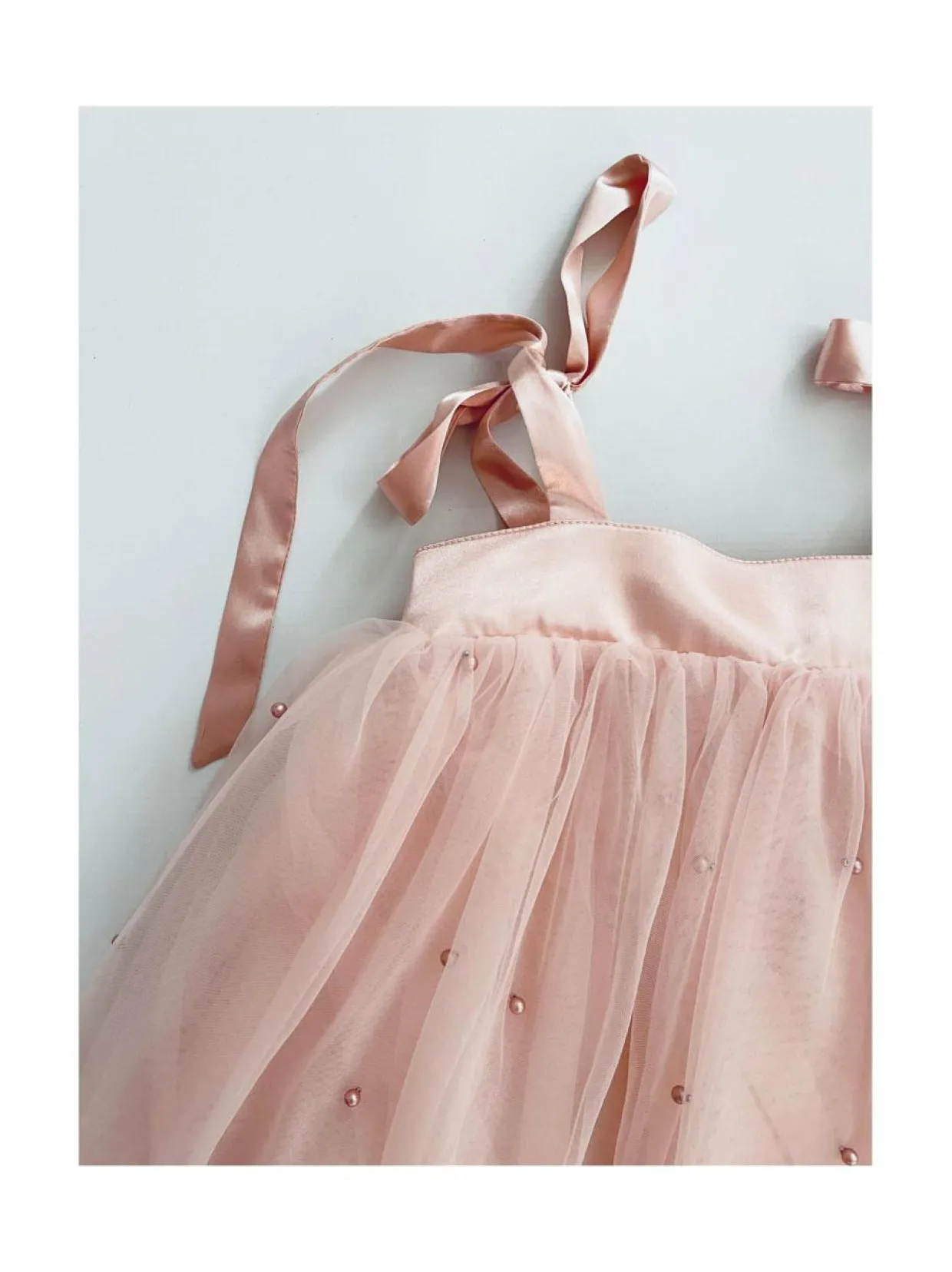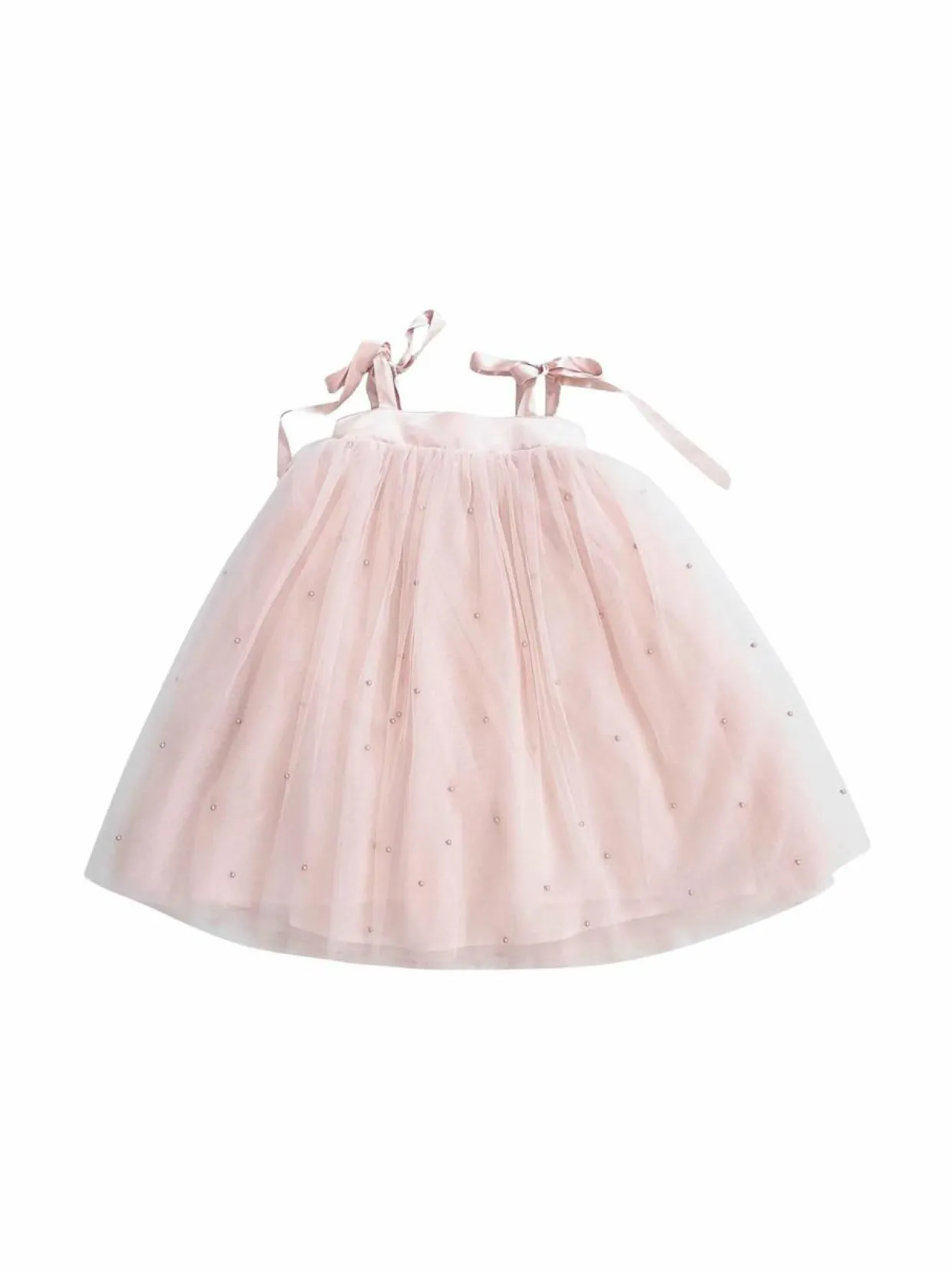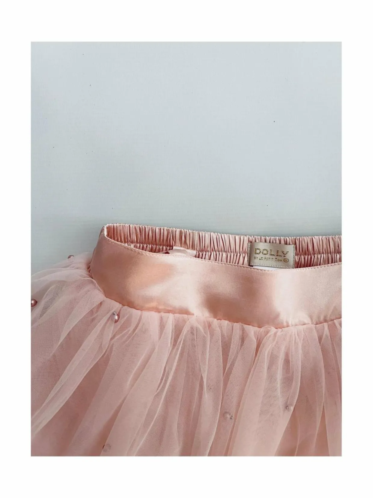 Tanskalaisen DOLLY by Le Petit Tomin suunnittelema Pearl on suloinen tyllimekko, jolla on useita käyttötapoja, käytä sitä mekkona tai hameena. Herkkä helmillä koristeltu tylli nostaa helmaa ja tuo volyymia. Siinä on pehmeä joustava vyötärö. Kaunis mekko tai hame tekee juhlapäivästä erityisen muistettavan pienelle prinsessalle.
