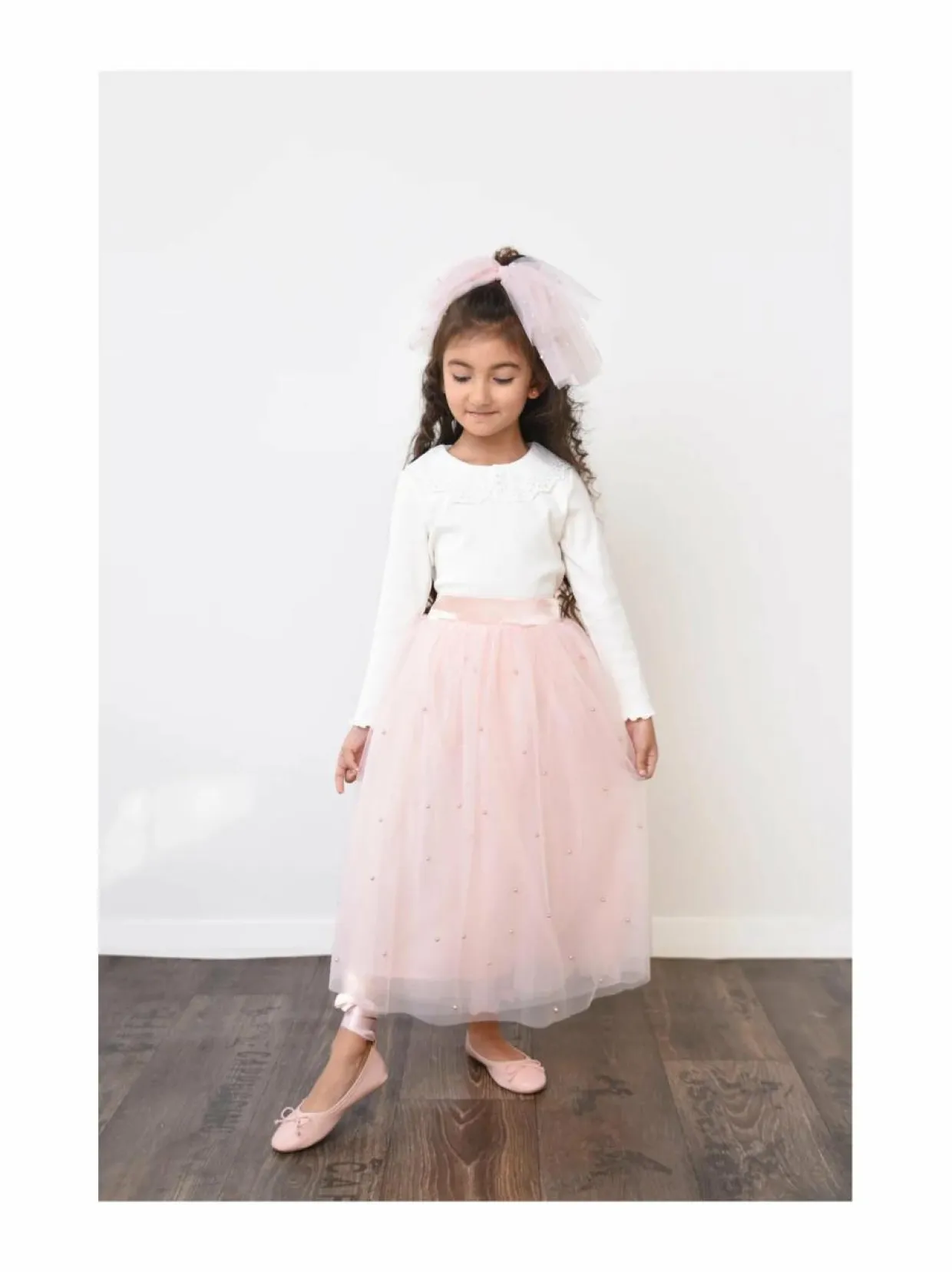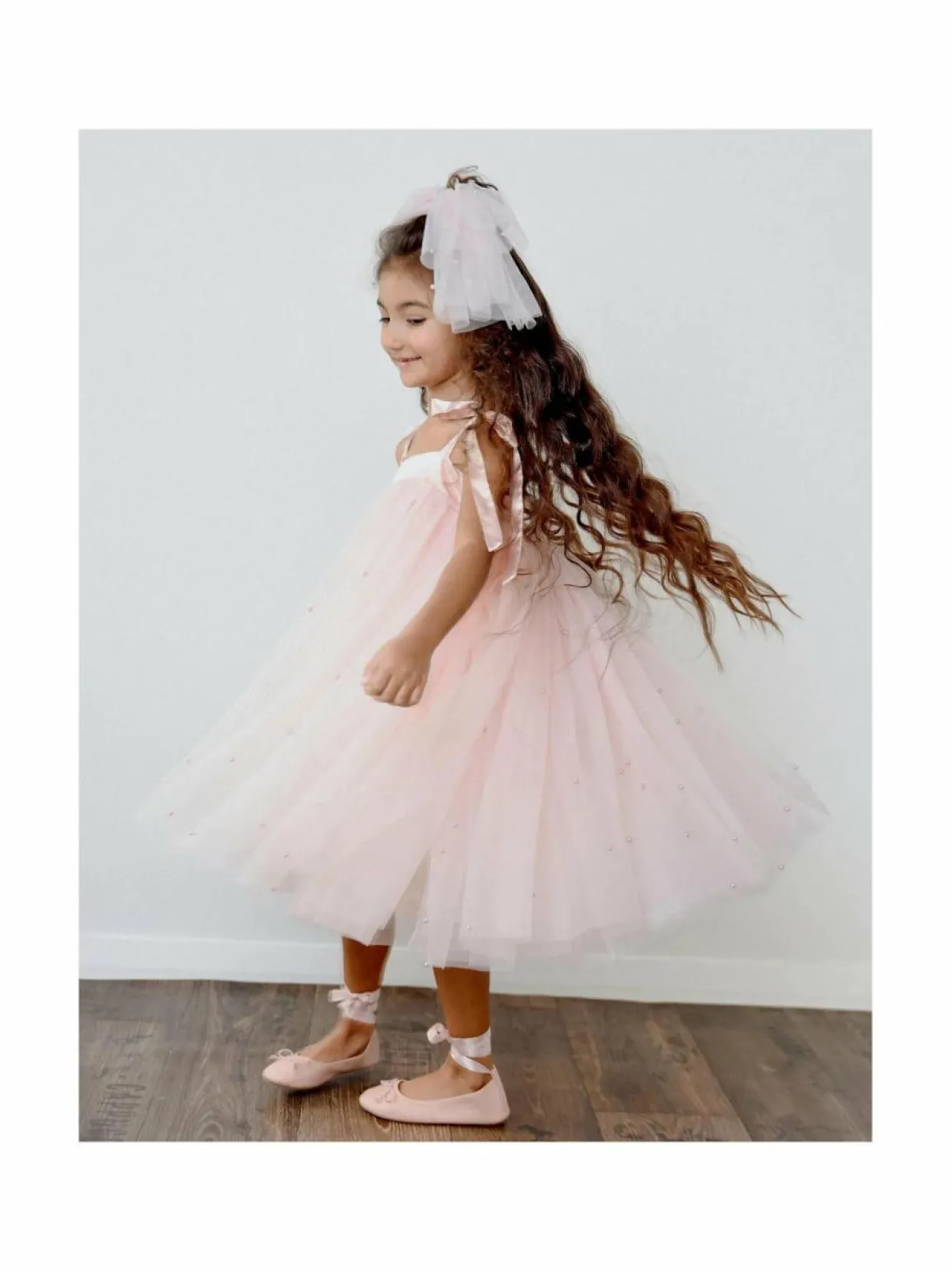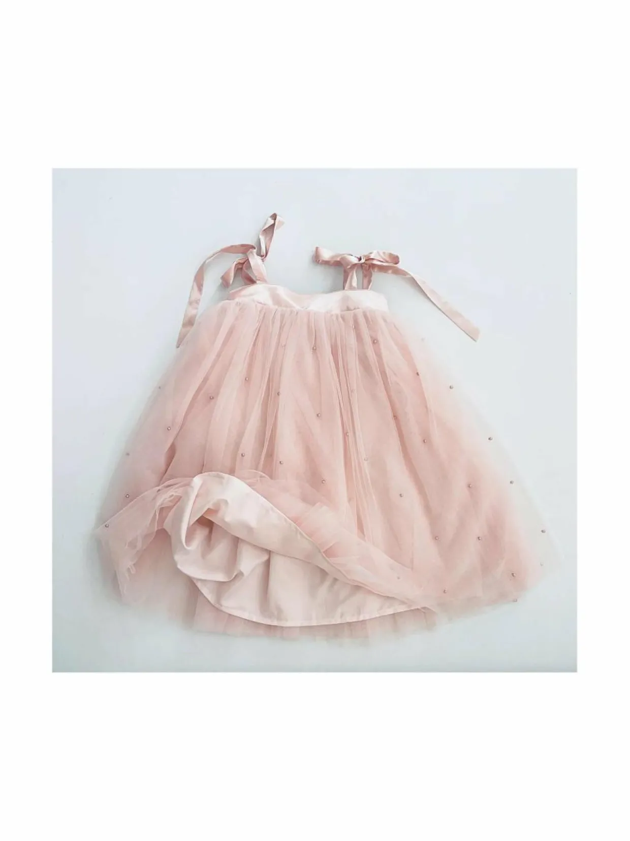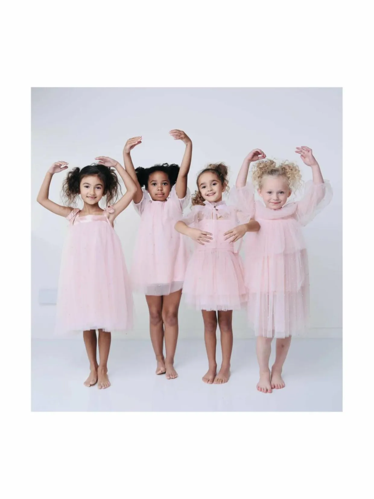 Tanskalaisen DOLLY by Le Petit Tomin suunnittelema Pearl on suloinen tyllimekko, jolla on useita käyttötapoja, käytä sitä mekkona tai hameena. Herkkä helmillä koristeltu tylli nostaa helmaa ja tuo volyymia. Siinä on pehmeä joustava vyötärö. Kaunis mekko tai hame tekee juhlapäivästä erityisen muistettavan pienelle prinsessalle.