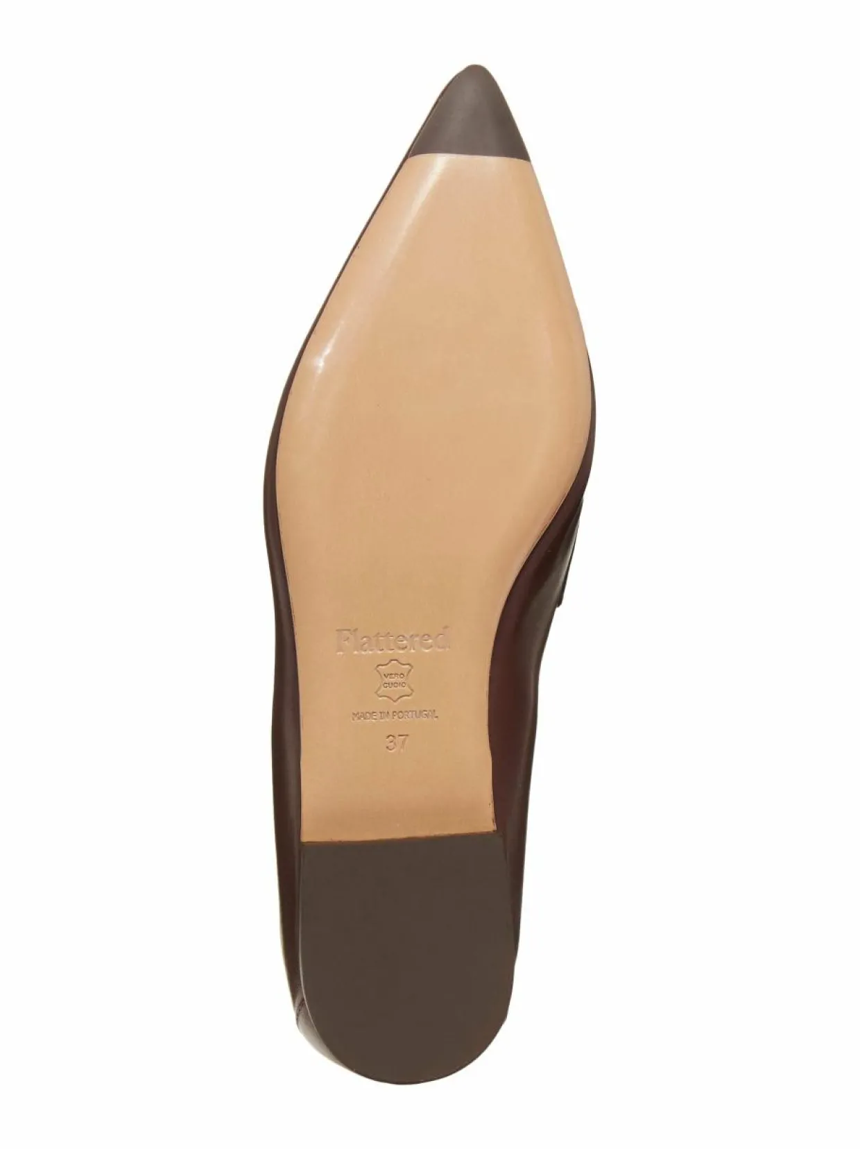 Nämä elegantit ja ajattomat kengät tuovat hienostuneisuutta mihin tahansa asuun. Flattered-brändin suunnittelemat loaferit on valmistettu korkealaatuisesta lehmännahasta. Sisäpuoli on vuorattu pehmeällä vuohennahalla, joka tuntuu miellyttävältä jalassa ja mukautuu jalkasi muotoon. Kenkien terävä kärki ja klassinen kaksivärinen design antavat niille modernin ilmeen, joka erottuu edukseen. Koristeellinen kultainen yksityiskohta viimeistelee tyylikkään ulkonäön.