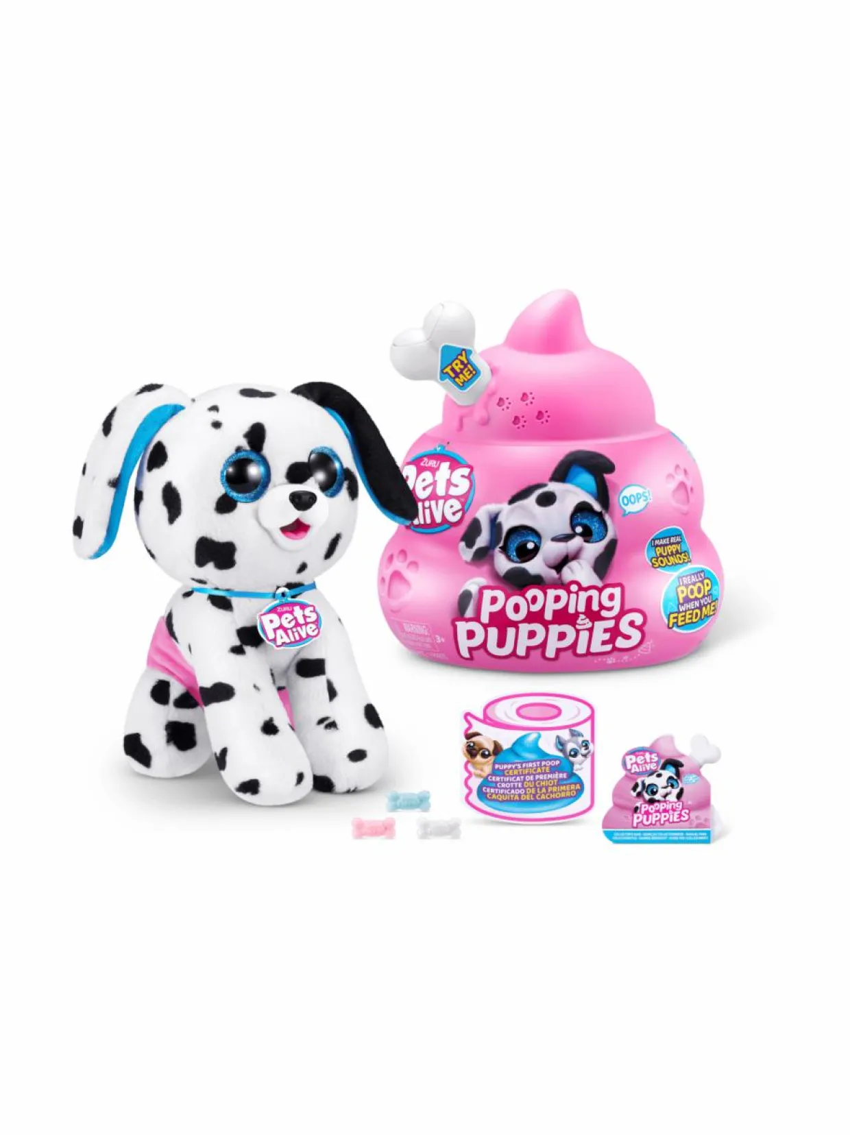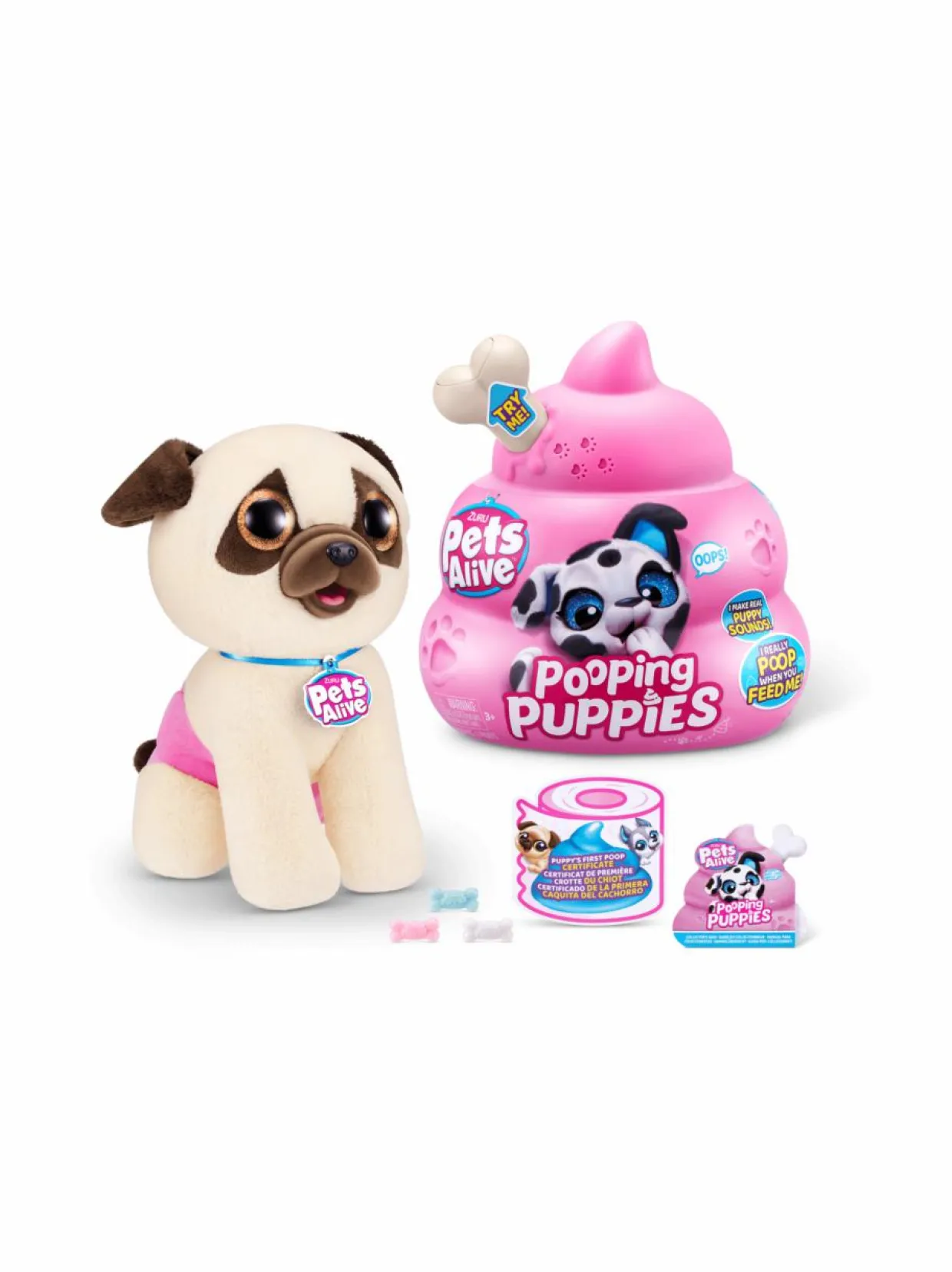 Kuulostan ihan oikealta koiranpennulta ja minulta pääsee välillä söpöjä pupseja! Minä osaan oikeasti kakata, kun syötät minua! Kerää sarjan kaikki kolme koiranpentua.