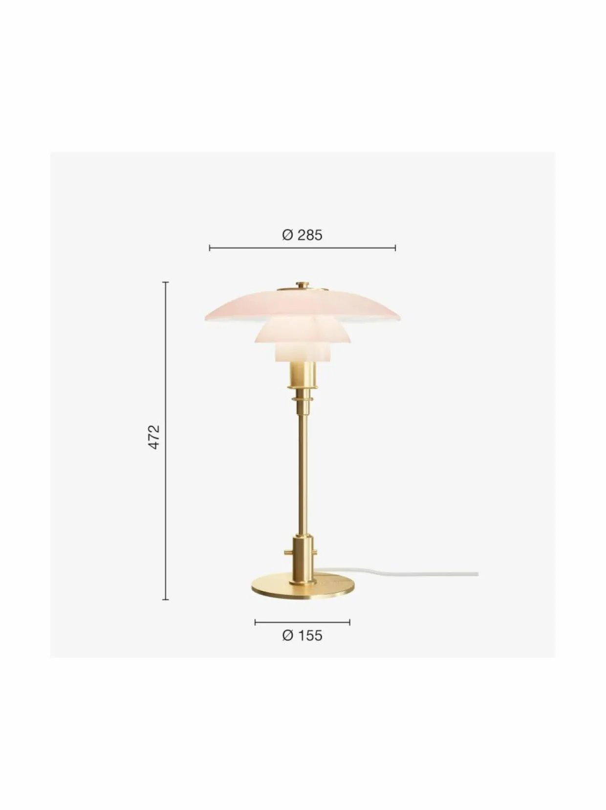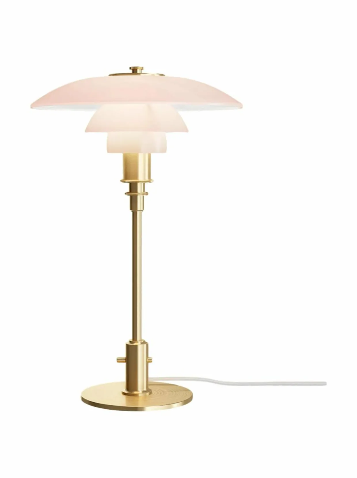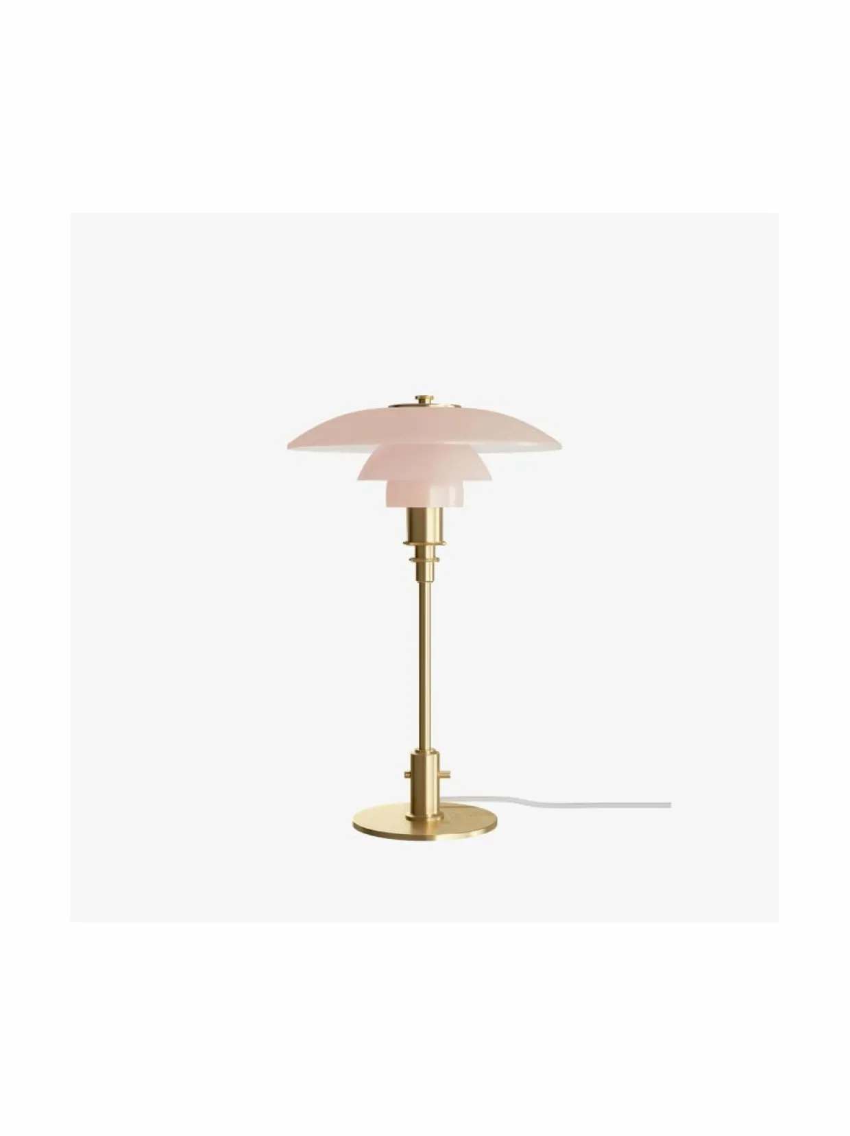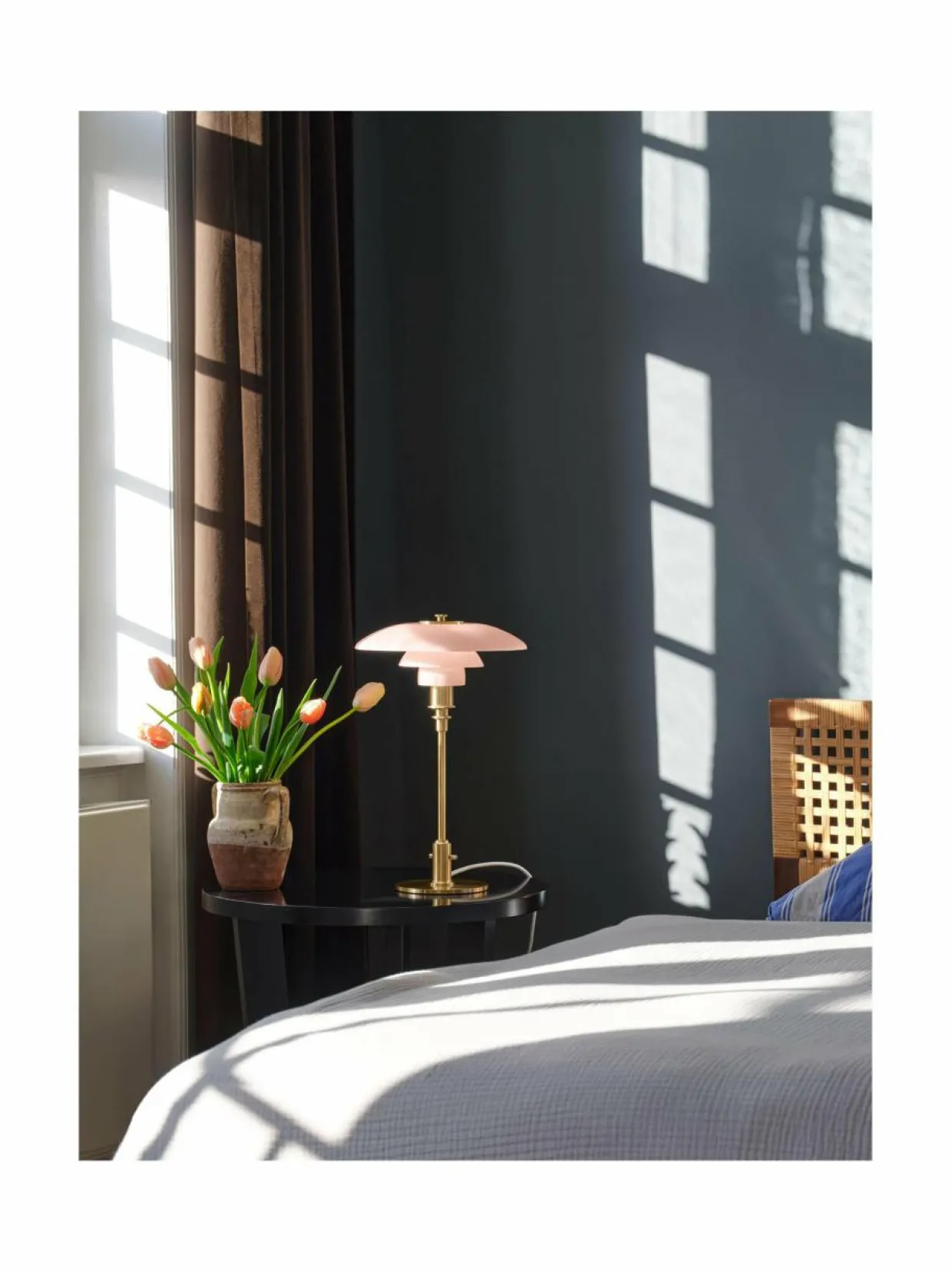 PH 3/2 Pale Rose -pöytävalaisin huokuu tyylikkyyttä. Vaaleanroosa lasi ja harjattu messinki luovat uudenlaisen vision suositusta Poul Henningsenin mallista.Poul Henningsenin heijastavaan kolmivarjostinjärjestelmään perustuva valaisin saa aikaan pehmeän, alaspäin suuntautuvan valon ja upean hehkun. Vaaleanroosan väriset suupuhalletut opaalilasivarjostimet ovat päältä kiiltäviä, ja yhdessä hiekkapuhalletun opaalinvalkoisen ja himmeän alapinnan kanssa ne saavat aikaan pehmeän ja runollisen valon.