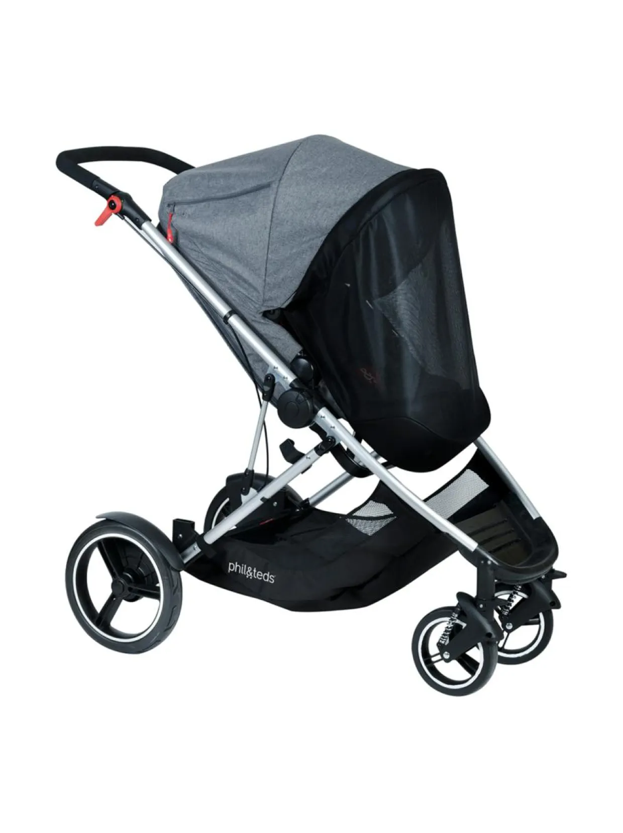 Phil&Teds Voyager hyönteissuoja rattaaseen on lisävaruste Phil&Teds Voyager -rattaisiin. Se on samalla myös UV-suoja, joka estää haitallisten UV-säteiden pääsyn lapseen. Hyönteissuoja saadaan kiinnitettyä rattaan kuomuun. Suoja kiinnitetään kumilenkeillä kuomun kiinnitysosien ympäri. Suojassa on jalkopäässä vahvempi osa, joka vedetään jalkatuen alta. Hyönteis-/UV-suoja jättää rattaan kuomun kankaan kauniisti esille piilottamatta sitä!