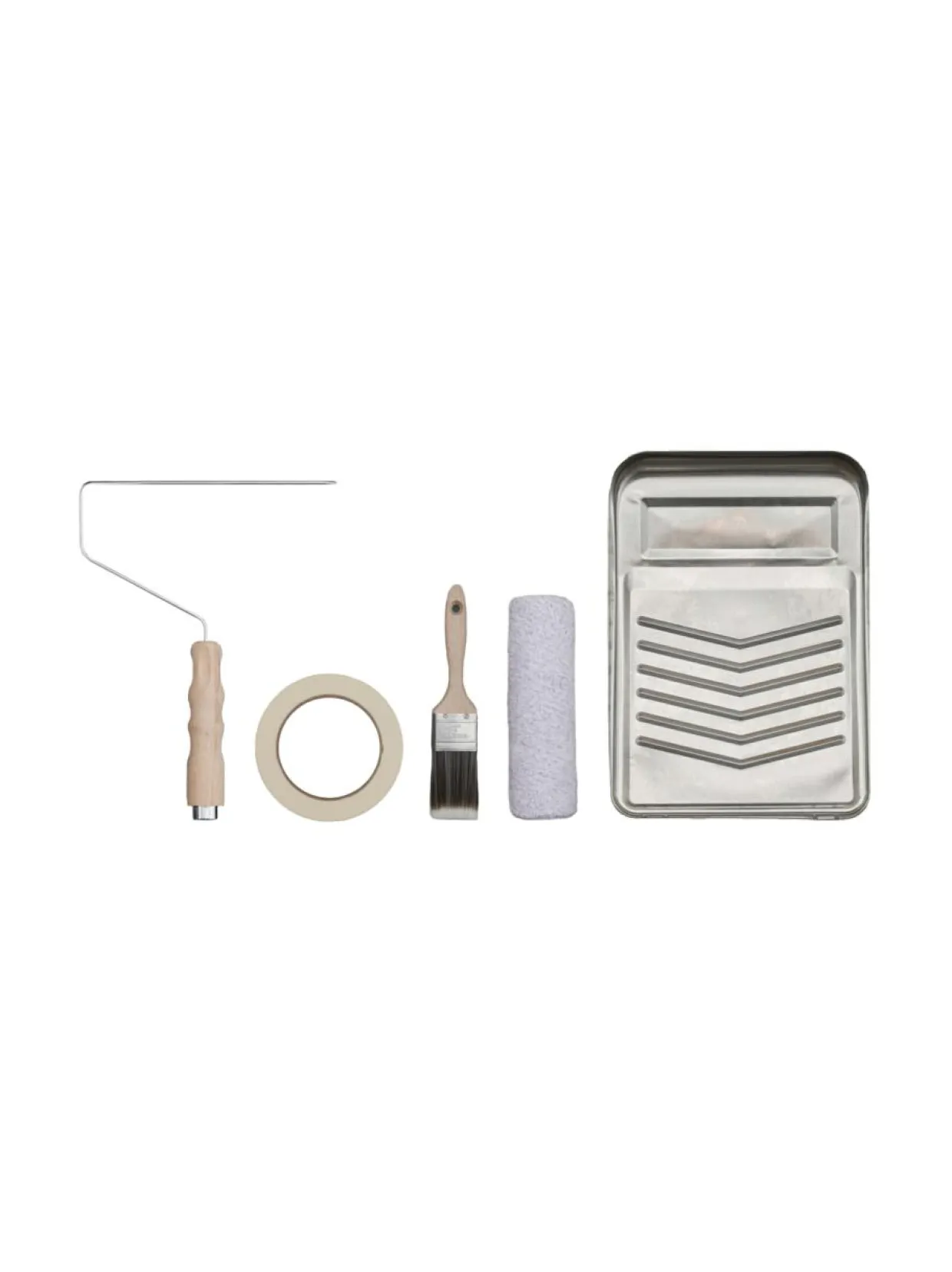 EPISODE I on 5-osainen tarvikesetti, joka sisältää kaiken mitä tarvitset pienempään maalausprojektiin. Pakkaus sisältää 23cm mikrokuitutelan, pyökkisen telavarren, 23cm metallisen maalikaukalon, 5cm pensselin ja 3cm x 50m maalarinteipin.