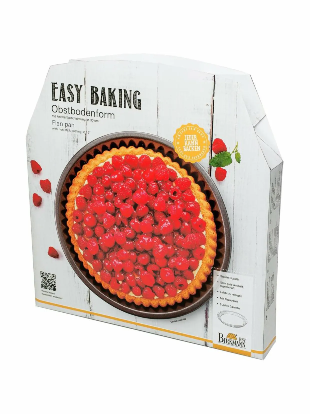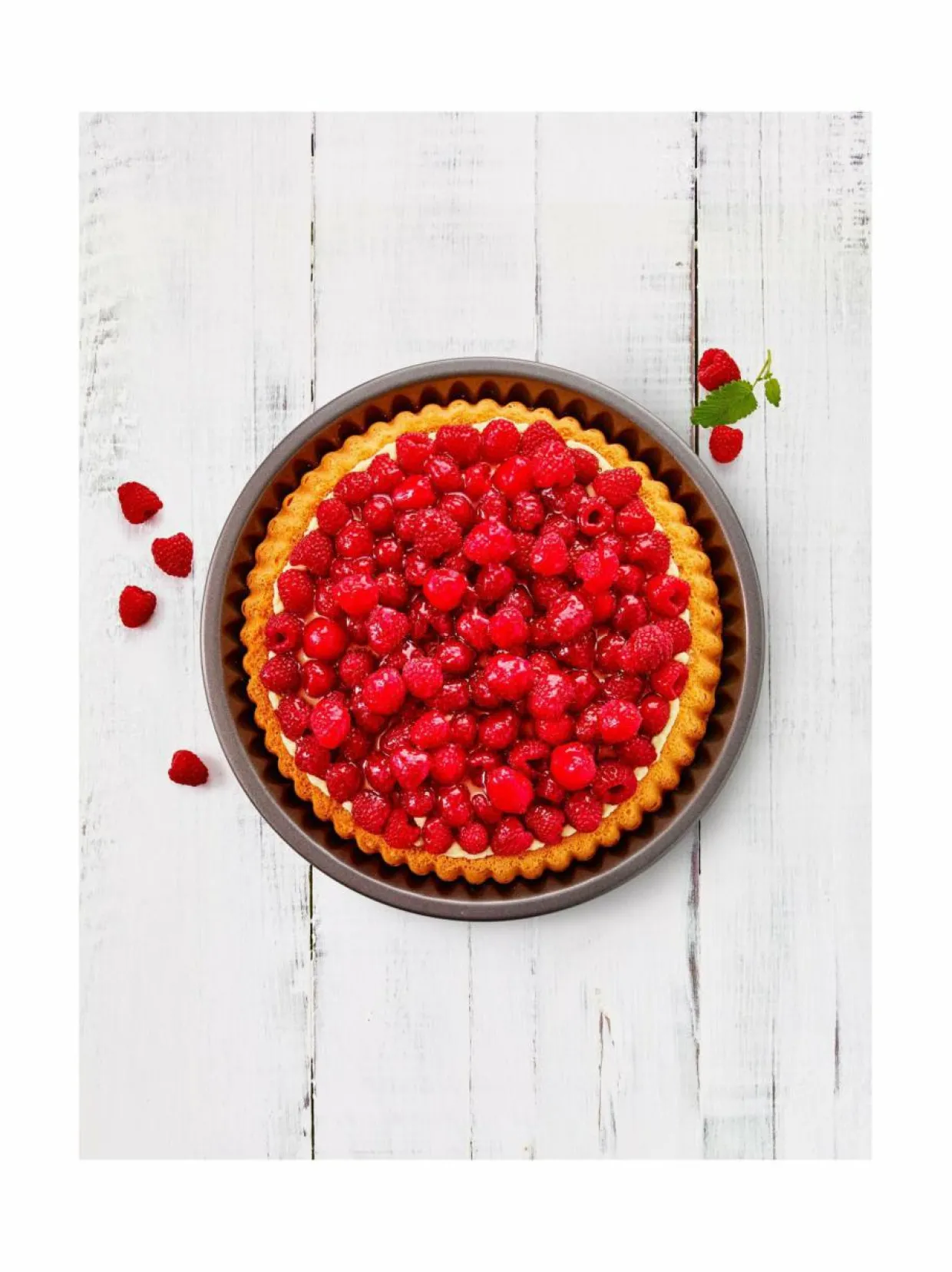 Tarttumattoman pinnoitteen ansiosta valmiin piirakan saa vaivattomasti irti vuoasta. Vuoan halkaisija on 30 cm ja korkeus 4,5 cm.