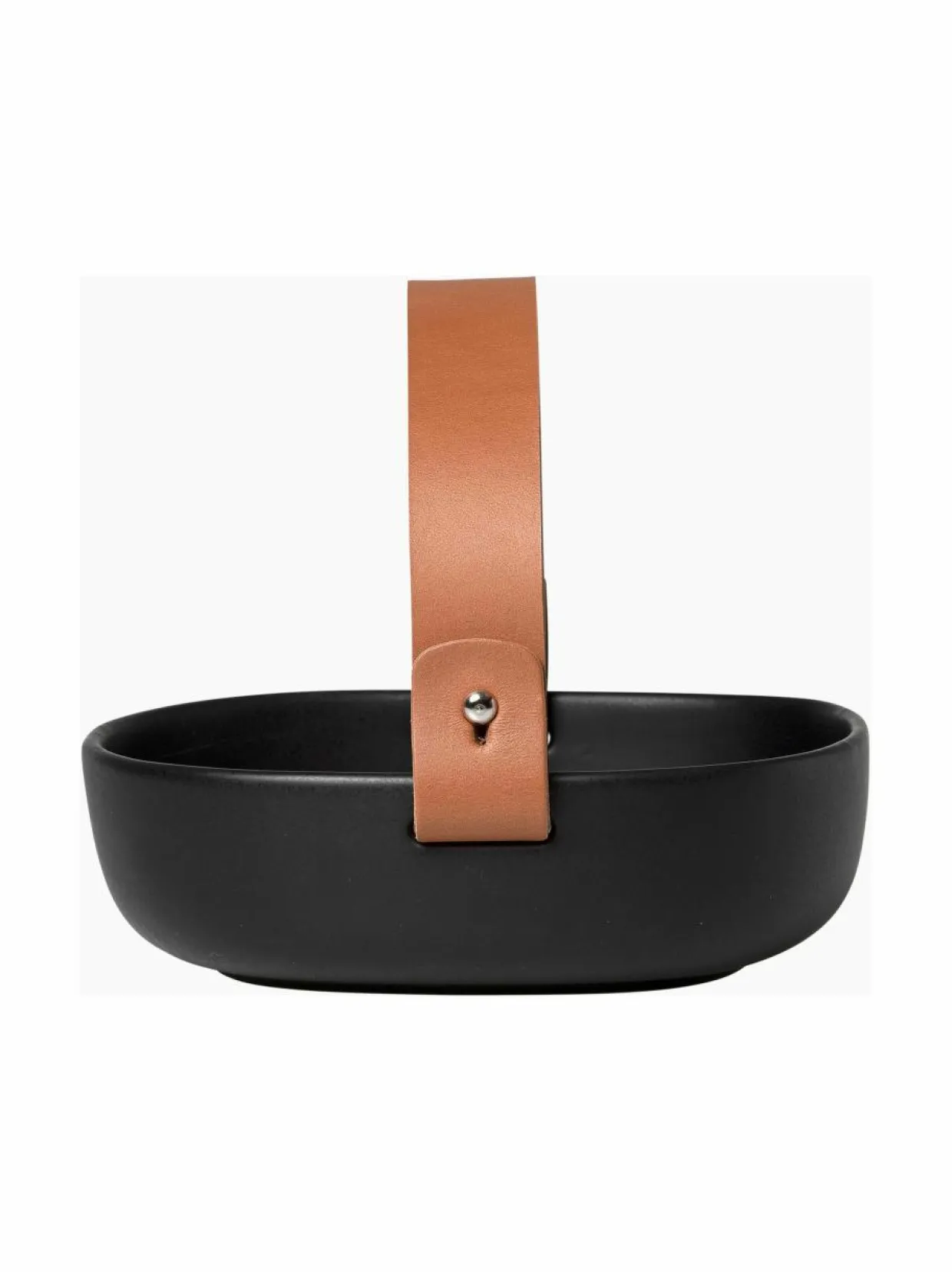 Marimekon Pikku Koppa -tarjoiluastia on valmistettu ruskeasta keramiikasta mattamustalla lasitteella ja se on konepesun, uunin, mikroaaltouunin ja pakastuksen kestävä. Nahkainen kantokahva on helppo irrottaa ja se tulee poistaa ennen astian pesemistä.