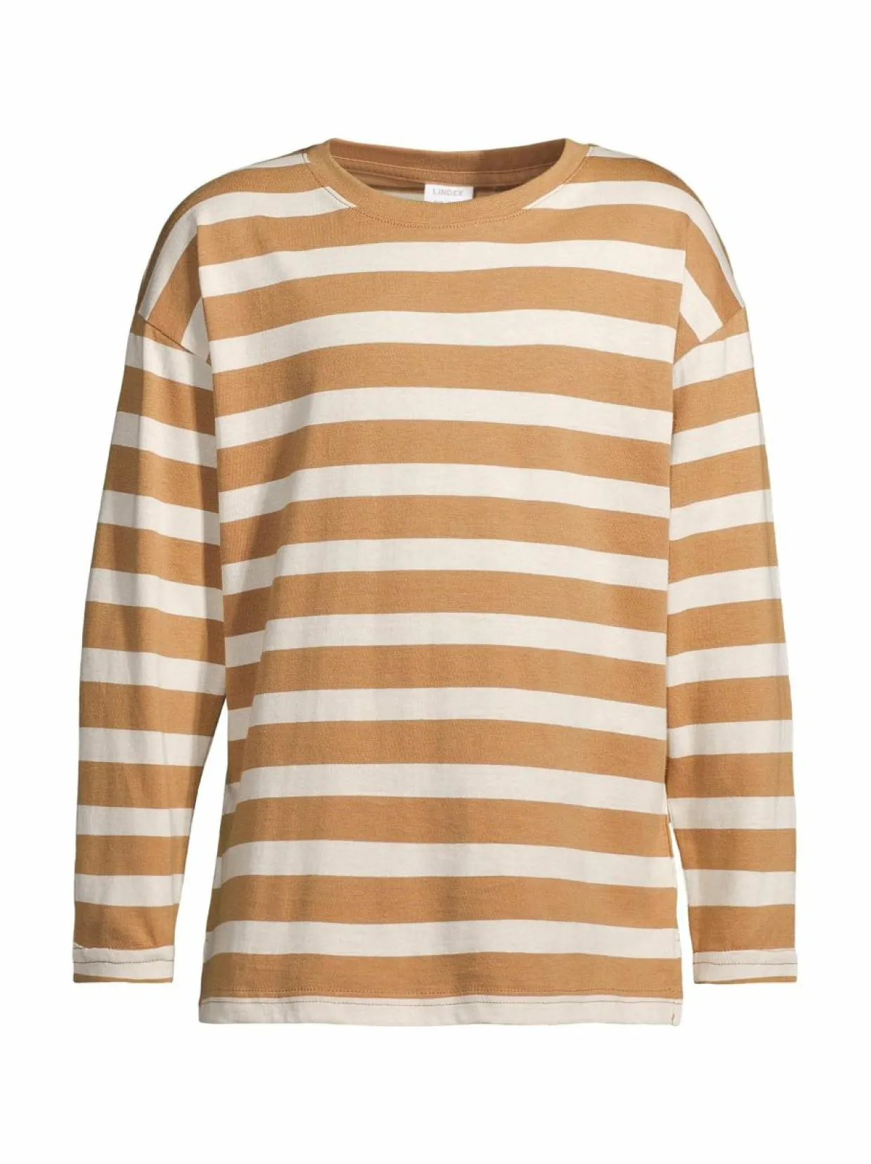 Pehmeästä puuvillasta valmistettu pitkähihainen trikoopaita, jossa on pyöreä pääntie. Klassinen raidallinen kuviointi tuo ilmettä paitaan. Pitkähihainen malli sopii kerrospukeutumiseen tai sellaisenaan. Materiaali on hengittävää ja miellyttävää ihoa vasten, tarjoten mukavuutta koko päivän ajan.
