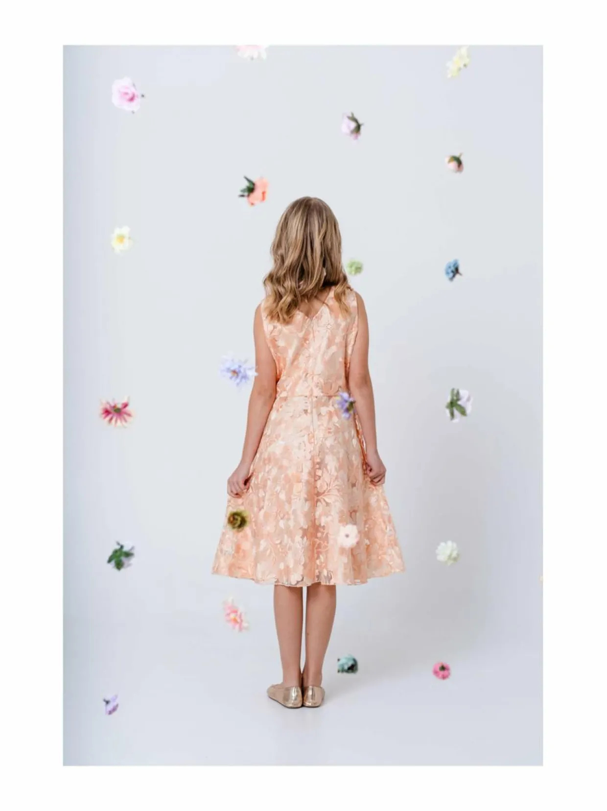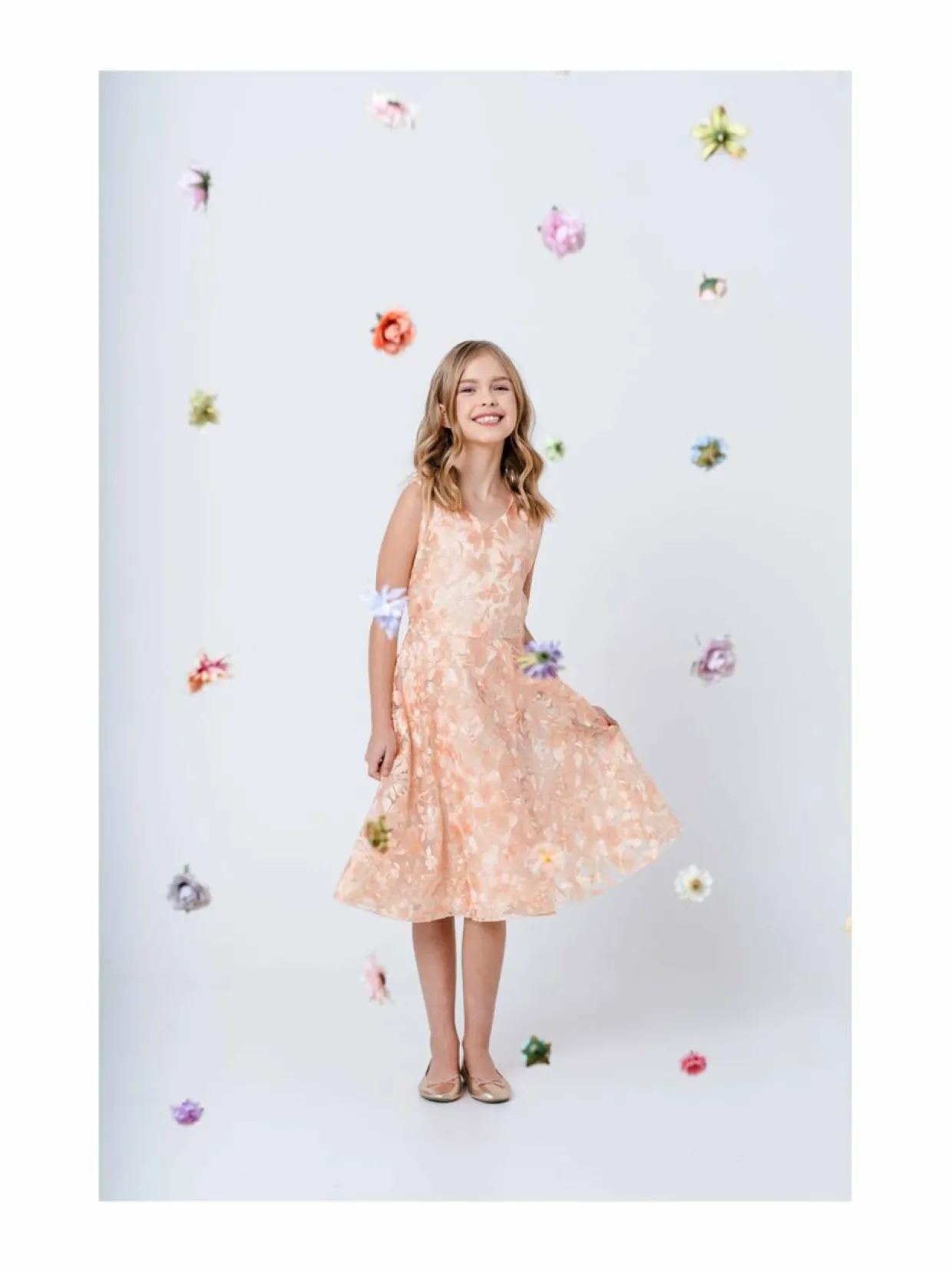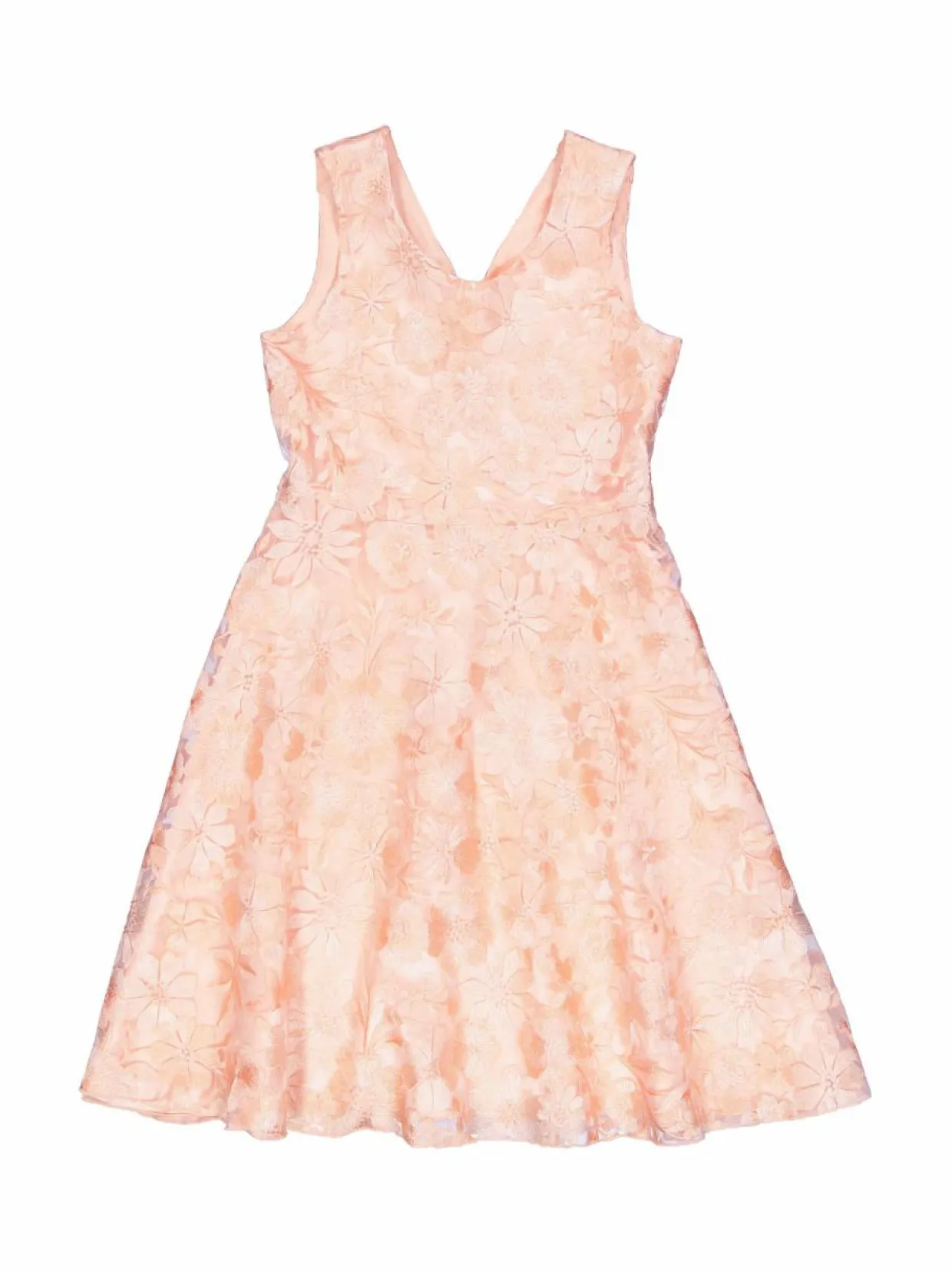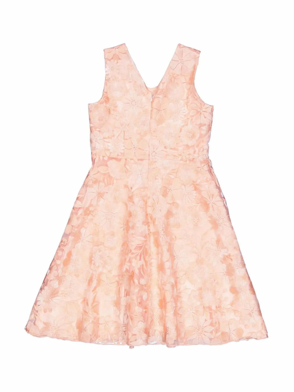Mingnelin merkin elegantti lasten juhlamekko kukkabrodeerauksilla. Hihattoman pitsimekon takaosassa on vetoketjusulku. Suunniteltu A-linjaisella helmalla ja normaalilla istuvuudella.