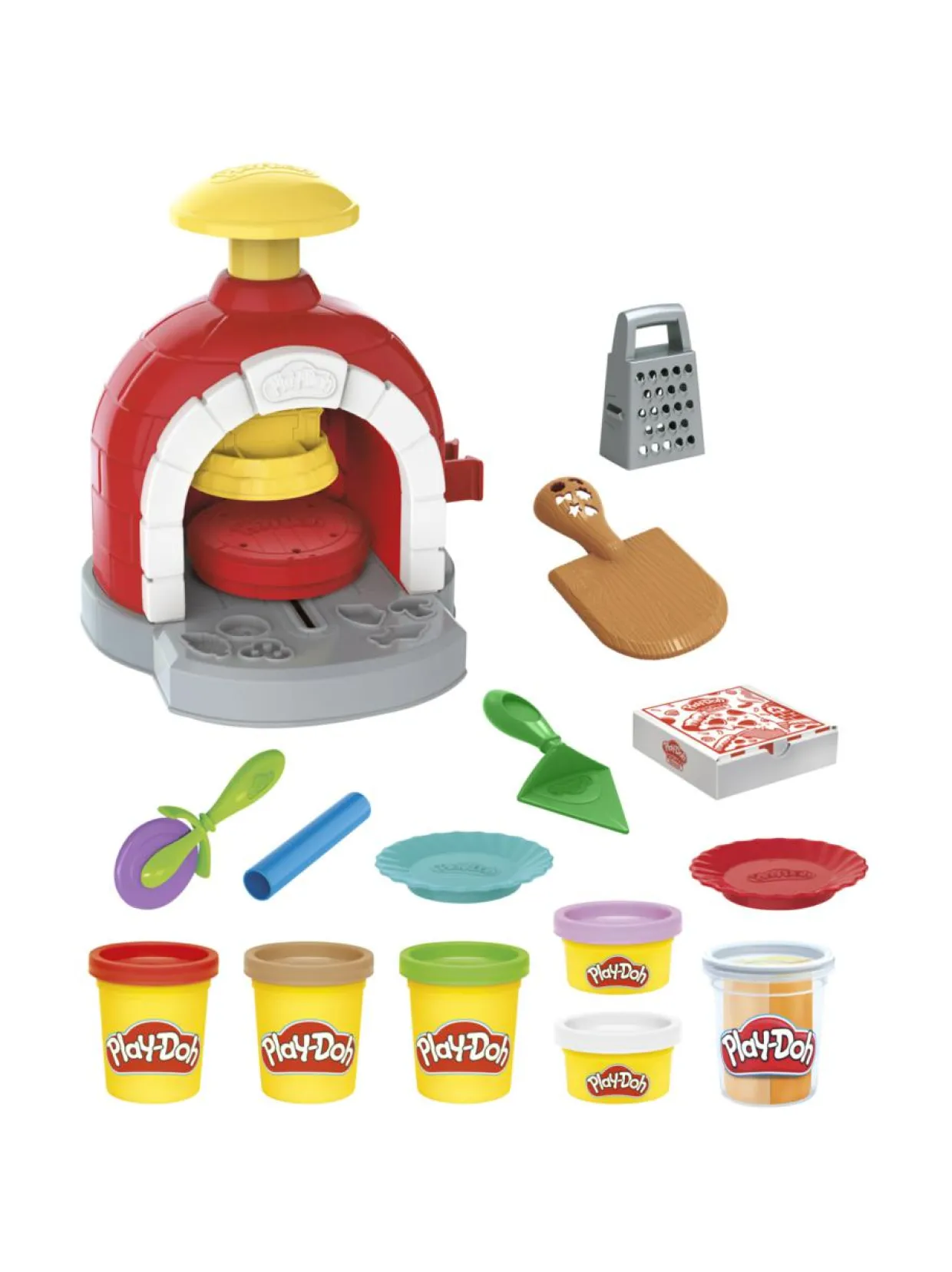 Avaa luovuuden maailma Play-Dohn avulla! Mielikuvitus on ruokalistalla, kun lapset leikkivät tällä leikkipitsauunilla! Lapset painavat ja pyörittävät mielikuvituksellisia Play-Doh-pitsoja, joita varten on yli 25 leikkitäytevaihtoehtoa. Leikkiruokasetti sisältää 8 työvälinettä, jotka inspiroivat tulevien kokkien luovuutta, 6 purkkia muovailuvahaa, mukaan lukien kolmivärinen purkki pitsa-teemaisia värejä. Lapset voivat myös pakata leikkipitsansa pitsalaatikkoon odottamaan kuljetusta asiakkaalle.