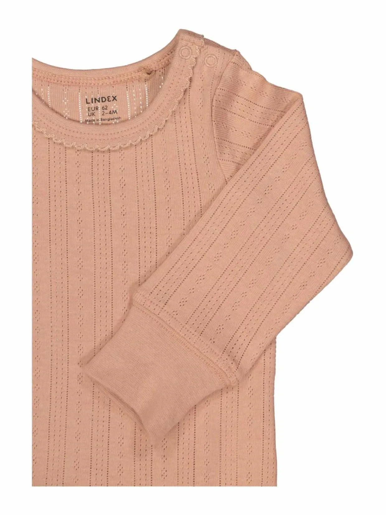 Lindexin pehmeä, pitkähihainen body on valmistettu pointelle-neuloksesta. Body tarjoaa mukavuutta ja ihastuttavaa ulkonäköä. Sen pehmeä puuvillainen materiaali tuntuu miellyttävältä vauvan iholla. Suunniteltu helpottamaan pukemista ja riisumista, tarjoten käytännöllisen valinnan päivittäisessä käytössä. Sopii täydellisesti leikkimiseen ja nukkumiseen. Jatkettavan koon ansiosta body sopii vauvalle pidempään.