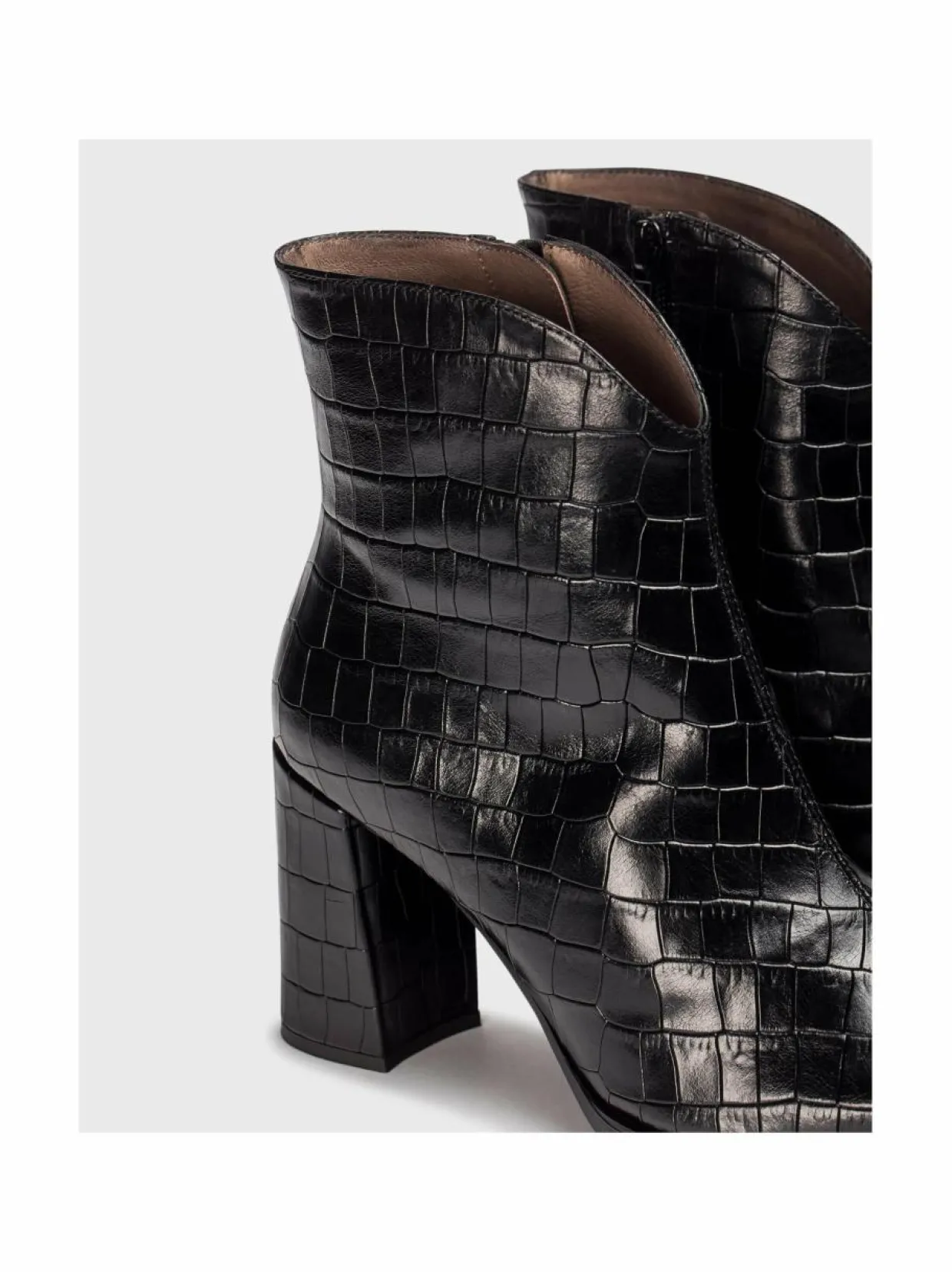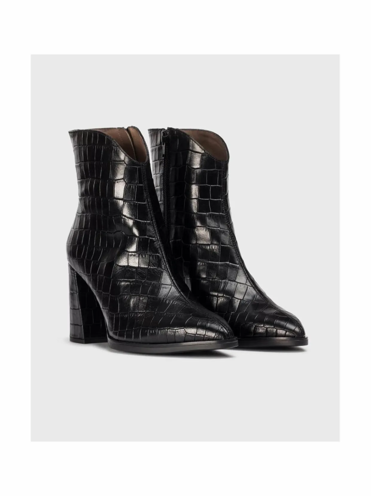 Wonders Pointy Croco -nilkkurit yhdistävät eleganssin ja modernin muotoilun. Krokotiilin nahkaa muistuttava pinta luo ajatonta ilmettä, ja terävä kärki sekä blokkikorko antavat niille viimeistellyn ulkonäön. Nämä nahkanilkkurit tarjoavat sekä mukavuutta että kestävyyttä. Kevyt TPU-pohja lisää käyttömukavuutta ja varmistaa hyvän pidon. Pointy Croco -nilkkurit sopivat täydellisesti niin arkeen kuin juhlaan.