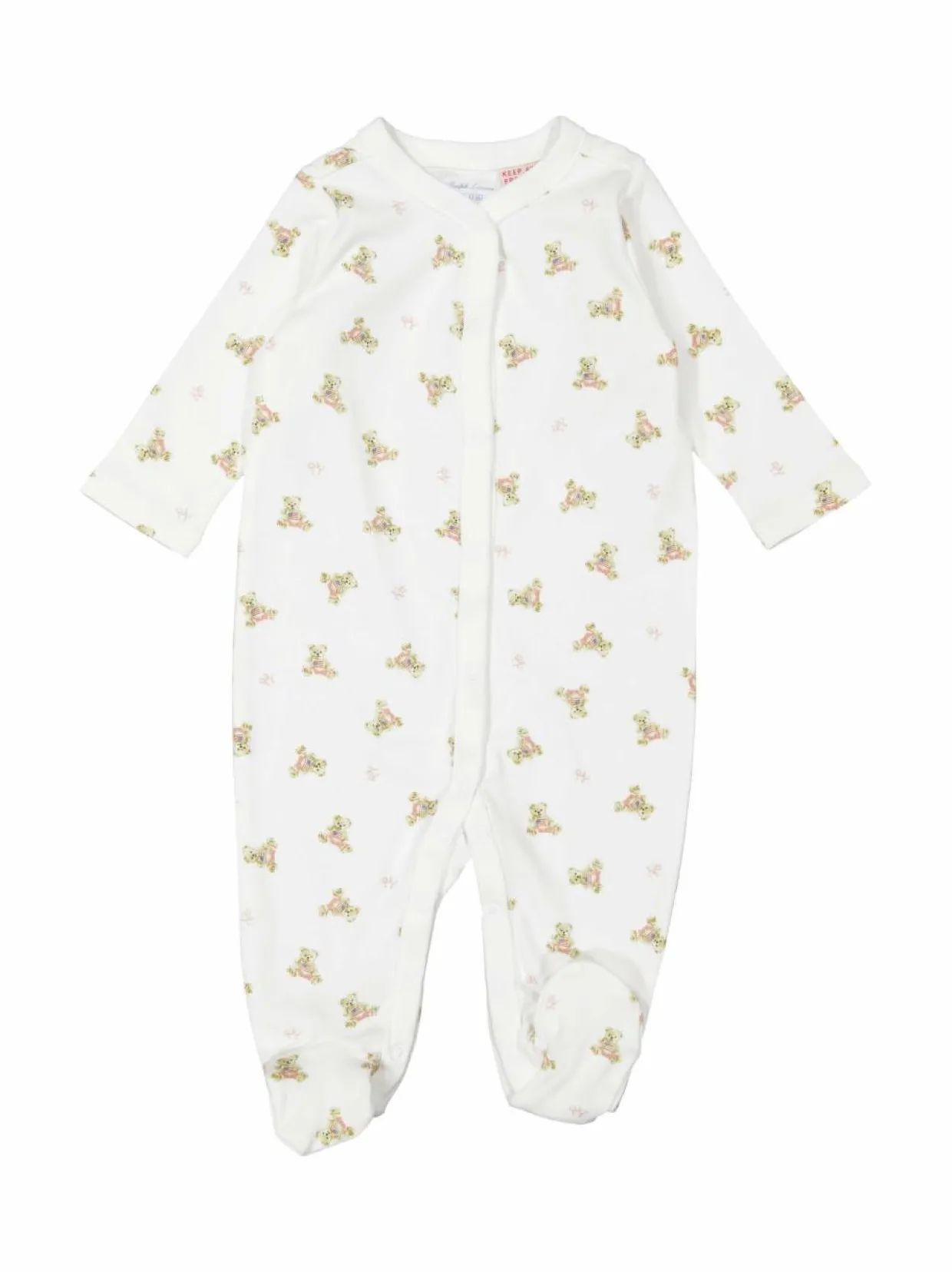 Kuvioidussa potkupuvussa seikkailee Polo Ralph Laurenin suloinen brändikarhu. Potkupuku suljetaan edestä ja haarasta painonapeilla. Materiaaliltaan potkupuku on pehmeää puuvillaa.