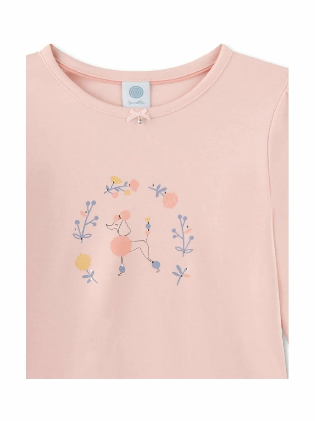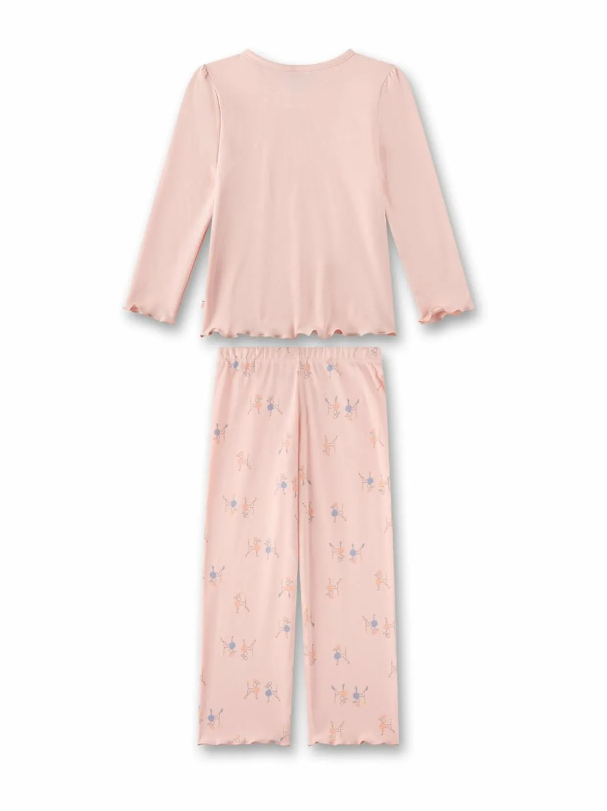 Sanettan kaksiosainen pyjamasetti on sataprosenttista puuvillaa, joka tuntuu miellyttävältä ihoa vasten. Settiin kuuluu pitkähihainen paita ja pitkät housut. Hauska villakoirakuviointi ja huolitellut yksityiskohdat tekevät pyjamasta sopivan niin koti-iltoihin kuin yökyläilyihinkin.