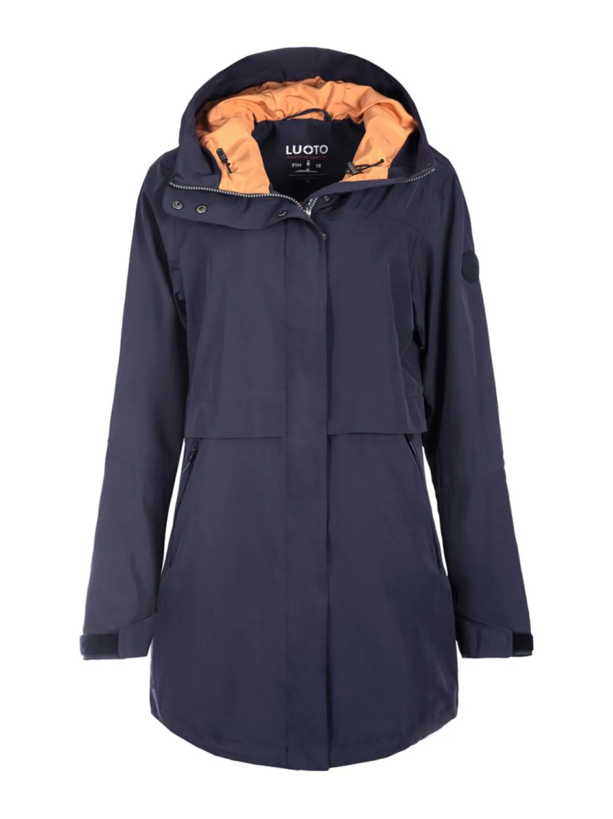 Luoto Poukama – Naisten ulkoiluparka. Korkea kaulus pitää kaulan lämpimänä navakammallakin tuulella. Pikkutavarat pysyvät matkassa mukana vetoketjullisissa taskuissa. Takin istuvuutta voi säätää mieleisekseen takin hupusta, vyötäröltä ja hihansuista. Päällikankaassa on ympäristöystävällinen PFC-vapaa vedenhylkivyyskäsittely.