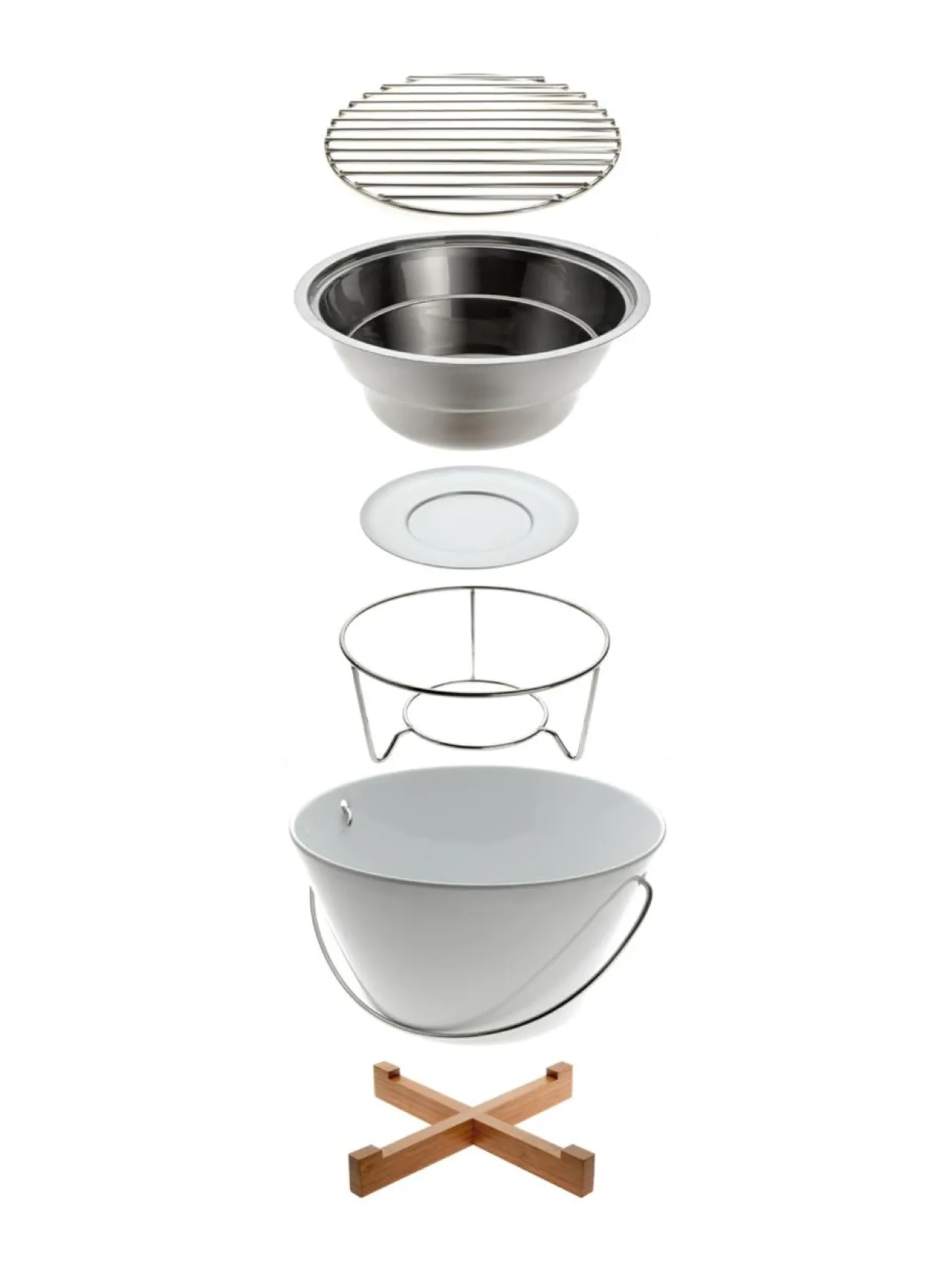 Eva Solon pöytägrillin avulla kesäiset illanistujaiset nousevat aivan uudelle tasolle. Yksinkertaisen tyylikäs pöytägrilli on kattauksen keskipiste, jonka ritilällä vieraasi voivat grillata pientä naposteltavaa pöydästä nousematta. Pöytägrilli soveltuu mainiosti vaikkapa pienen seurueen tapas-iltoihin ja kätevän kantokahvan ansiosta se on helppo ottaa mukaan myös puistoon tai rantapiknikille. Tuote koostuu valkoisesta posliinikulhosta, pohjan lämpösuojasta, hiiliastiasta telineineen, paistoritilästä ja tukevasta puualustasta. Kaikki osat puualustaa lukuun ottamatta voidaan pestä astianpesukoneessa.