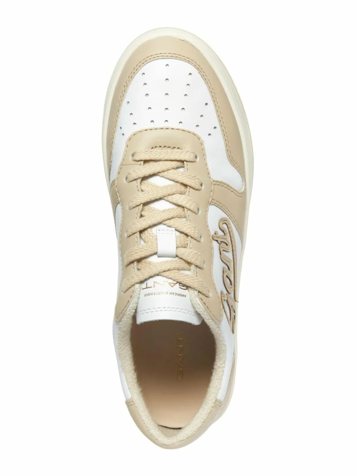 Retrohenkiset sneakerit GANT merkiltä. Prepla-sneakerit on valmistettu sileästä nahasta ja niissä on perinteinen nauhakiinnitys. Kärjen rei’itys tarjoaa hyvän ilmanvaihdon. Sisäpuolella on pehmeä tekstiilivuoraus.