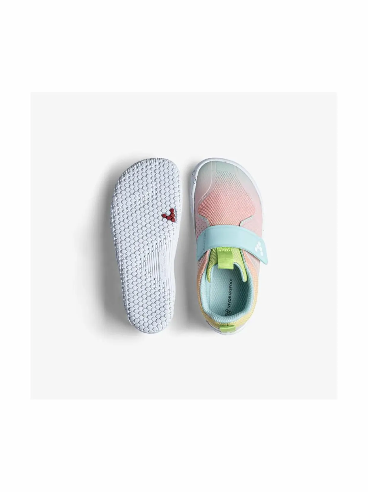 Vivobarefoot Primus Sport III Pre-School Ombre -paljasjalkakengät on suunniteltu pikkulapsille. Jalkine on valmistettu käyttäen pehmeämpiä materiaaleja ja joustavampaa ulkopohjaa kuin koskaan Vivobarefoot-jalkineissa aiemmin. Tämä paljasjalkakenkä on tehty keskittyen kevyeen mukavuuteen ja helppouteen pienille liikkujille. Rakenne on virtaviivaistettu monimutkaisuuden minimoimiseksi, ja siinä on hengittävä verkkomateriaali. Päällinen on kevyt ja ilmava. Tarranauhasuljenta takaa napakan istuvuuden, joten nämä ovat ihanteelliset jokapäiväiseen käyttöön.