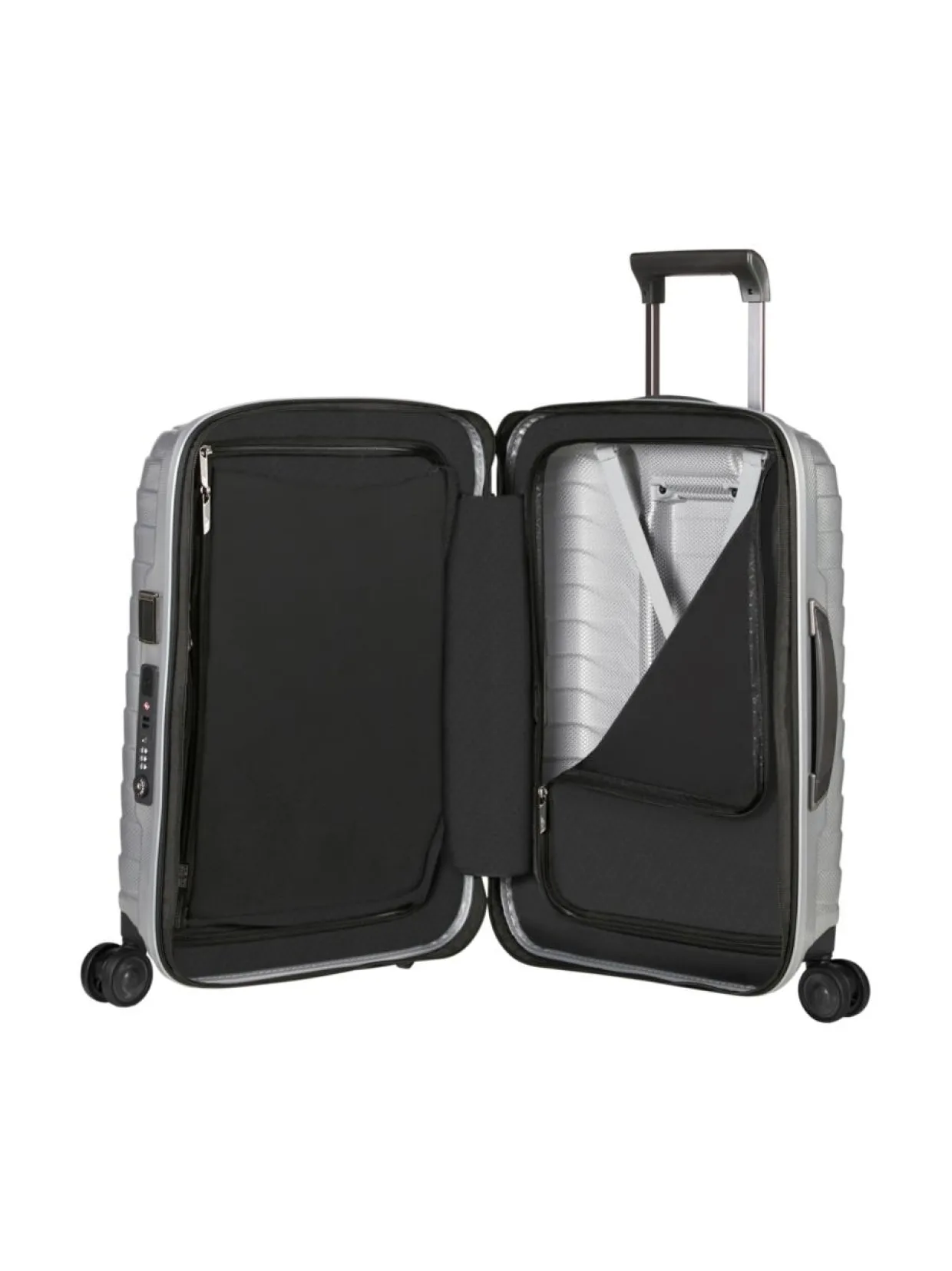 Kokeneen tutkimusryhmämme kehittämä Samsonite Proxis -lentolaukku ja omassa tuotantotehtaassamme valmistettu, Roxkin on innovaation ja laadun symboli. Matkalaukun kuori on valmistettu Roxkin -materiaalista, joka palaa muotoonsa kovan iskun jälkeen ja on erittäin iskunkestävä. Nauti huolettomasta, ensiluokkaisesta matkakokemuksesta kaksiputkisen vetoaisan ja hiljaisesti rullaavien tuplapyörien ansiosta. Kahdessa tilavassa osastossa on säädettävät ja irrotettavat ristikkäiset kuminauhat pitämässä tavarasi järjestyksessä. Tasku tilanjakajassa tarjoaa lisää käytännöllistä säilytystilaa. Samsoniten WeCare -takuu takaa matkalaukulle huolettoman korjauspalvelun 10 vuoden ajan.