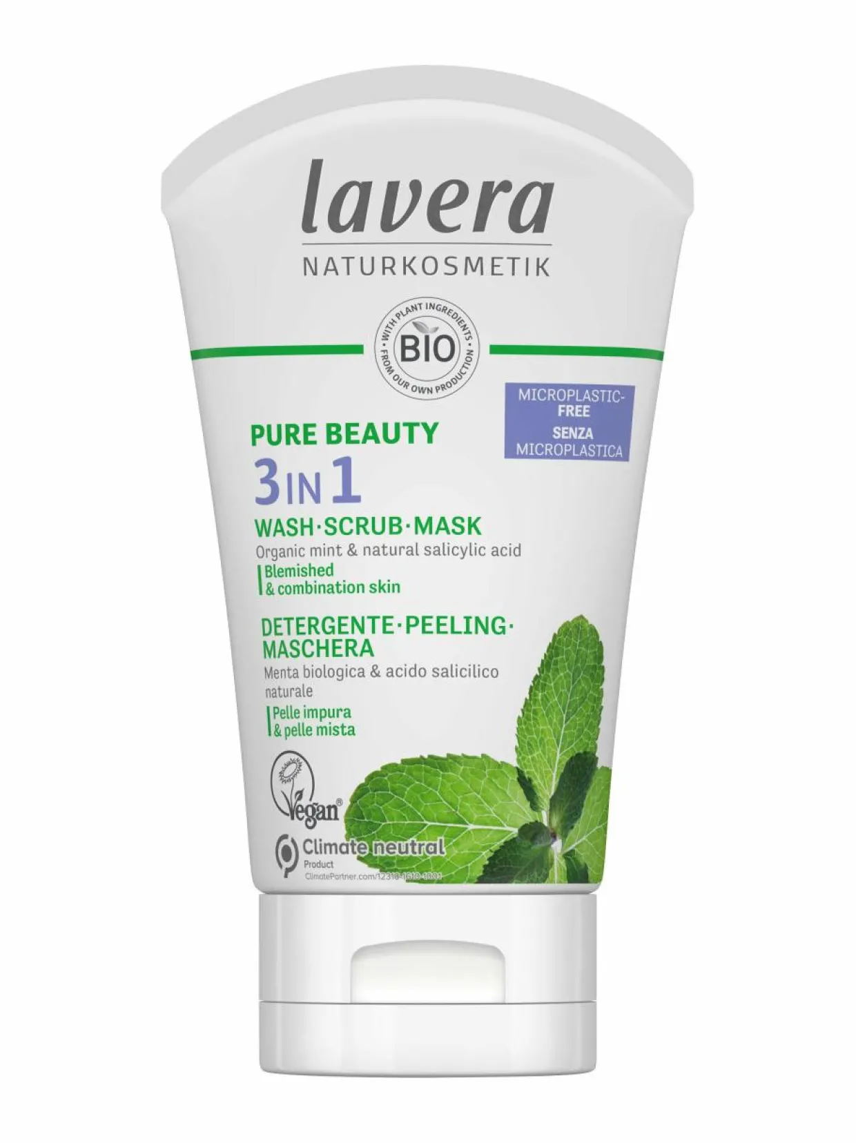 Kolmivaikutteinen puhdistusnaamio soveltuu erinomaisesti epäpuhtaan ihon tasapainottamiseen tai ihon syväpuhdistamiseen. Lavera 3 in 1 Wash, Scrub, Mask tarjoaa samassa tuotteessa kasvojen pesun, kuorinnan ja syväpuhdistavan naamion. Puhdistusaine tasapainottaa ihon talintuotantoa ja vähentää ihon rasvoittumista. Piparminttu-uute puhdistaa ja kirkastaa, salisyylihappo avaa tukkeutuneita ihohuokosia ehkäisten ja poistaen liiallista talia. Ihanteellinen tuote kaiken ikäisille, omasta ihosta riippuen, joko päivittäiseen tai viikoittaiseen käyttöön. Sopii hyvin myös miehille!