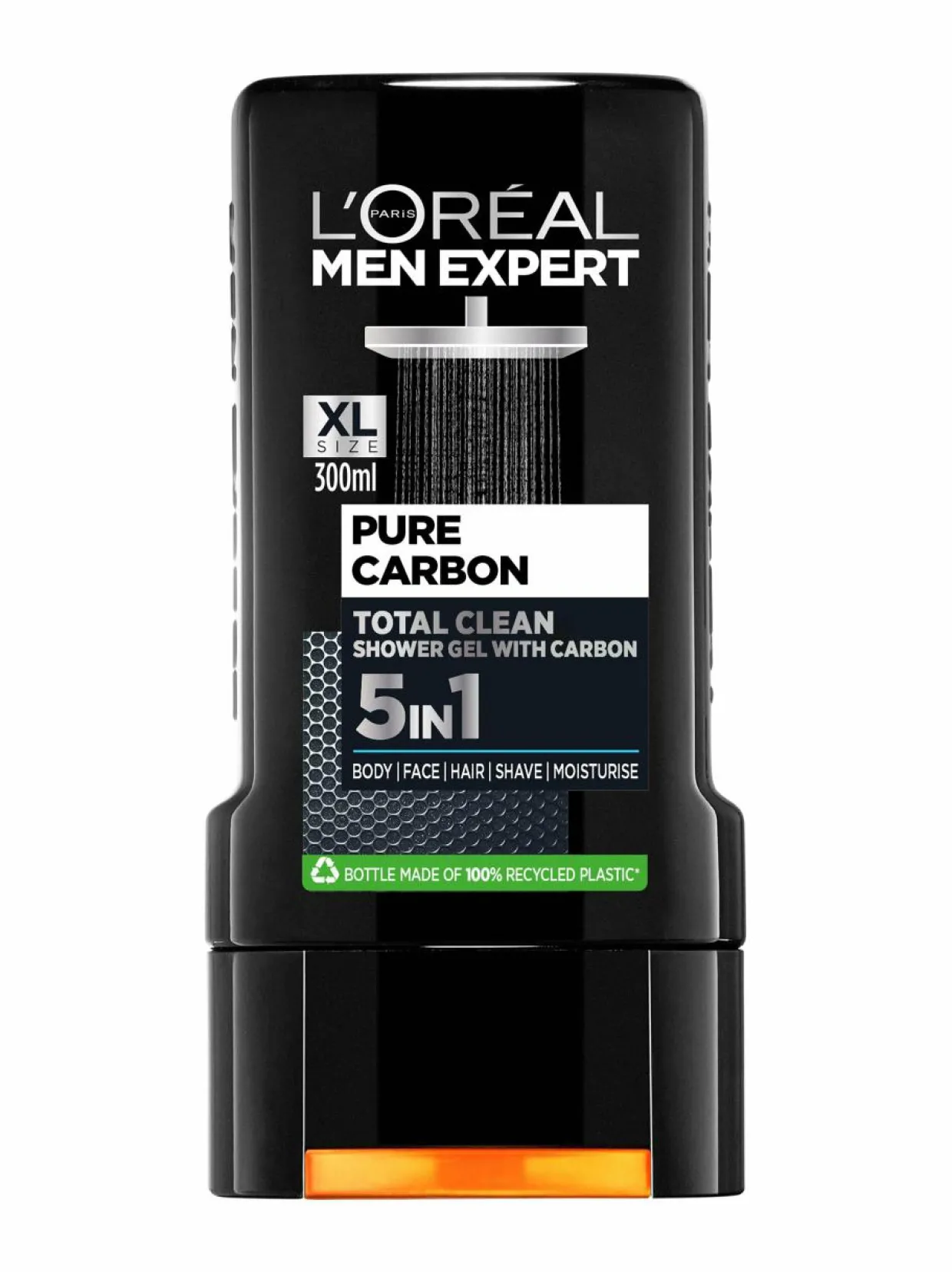 L’Oréal Men Expert Pure Carbon Total Clean Shower Gel on hiiltä sisältävä 5-in-1 suihkugeeli. 5 käyttötapaa tuotteessa: Vartalo, kasvot, hiukset, parranajo, kosteutus. Intensiivisen raikas tuoksu. Puhdas ja raikas tunne.