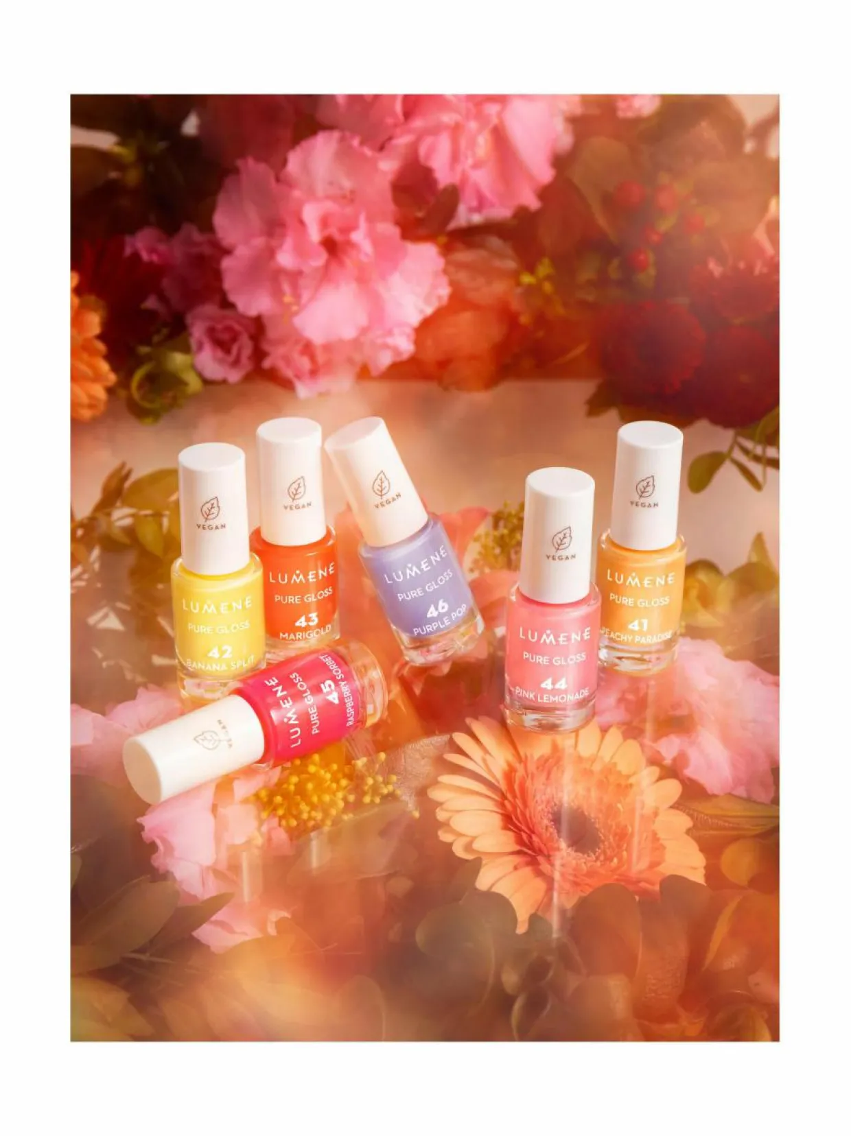 Pure Gloss Kynsilakka on vegaaninen, hehkuvan kiillon antava kynsilakka, joka auttaa luomaan salonkimaisen lopputuloksen kynsille vaivattomasti. Uusi, luonnollisempi ja vegaaninen koostumus antaa kynsille geelimäisen lopputuloksen, joka kestää kauniina jopa 5 päivää. Uusi, hieman leveämpi harja auttaa levittämään kynsilakan tasaisesti jo yhdellä kerroksella.