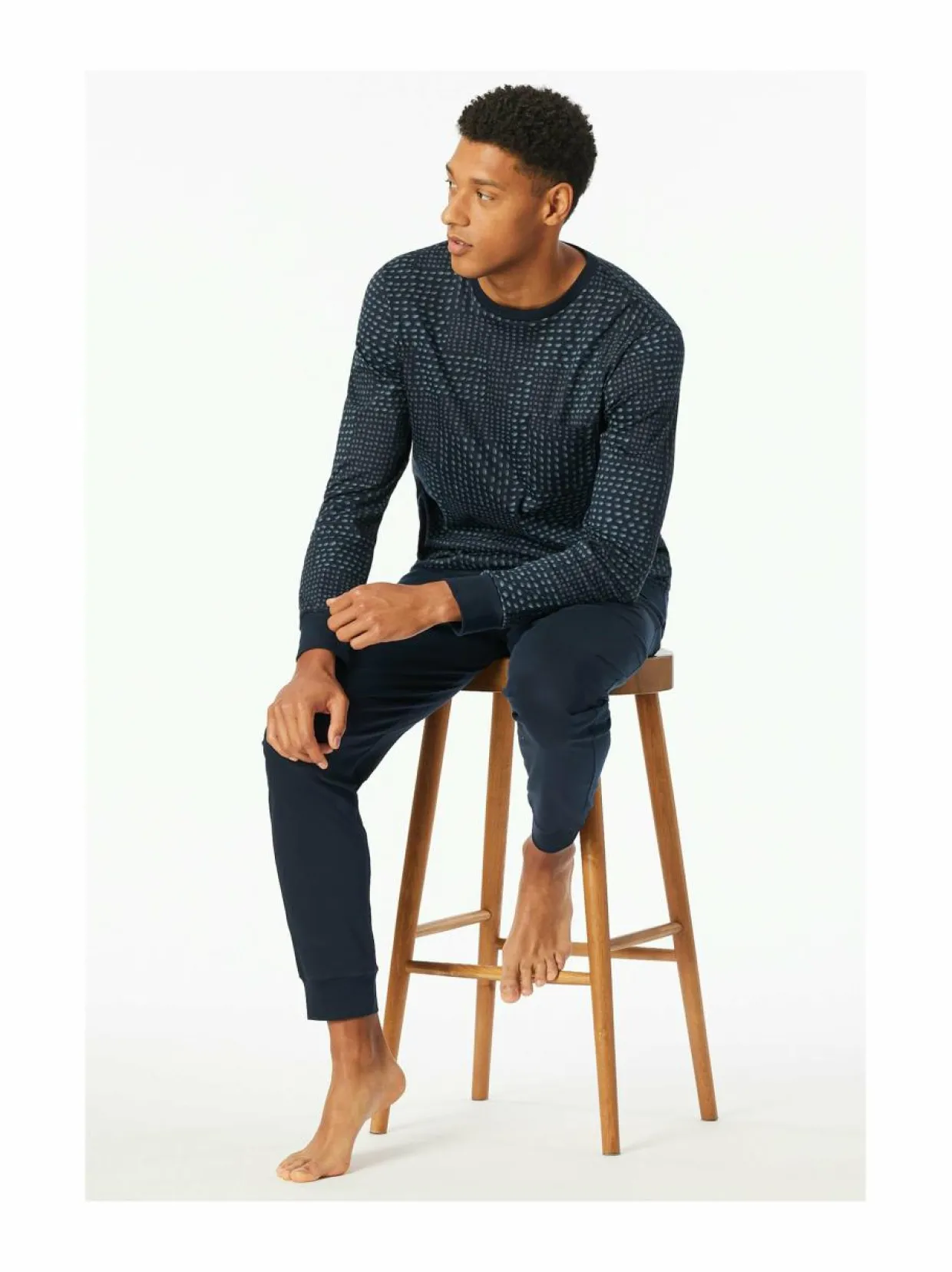 Schiesserin pitkä pyjama tarjoaa mukavuutta ja tyyliä lepohetkiin ja yöuneen. Pehmeästä puuvillasta valmistettu pyjama hengittää hyvin ja tuntuu miellyttävältä ihoa vasten. Yläosan moderni kuosi ja housujen yksivärinen ilme luovat yhdessä ajattoman ja rennon kokonaisuuden. Resorit hihansuissa ja lahkeissa tuovat lisämukavuutta ja varmistavat hyvän istuvuuden.