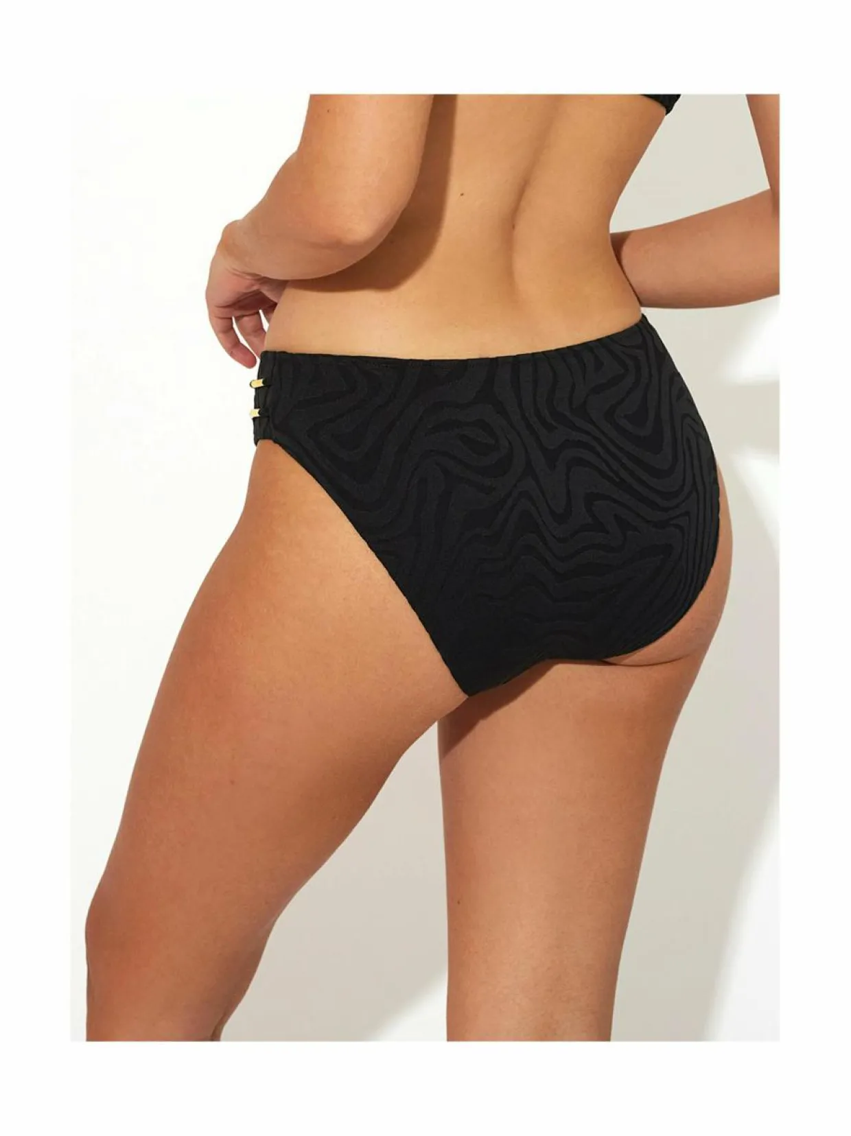 Promise merkin Regular-bikinialaosa on valmistettu pehmeästä, joustavasta ja nopeasti kuivuvasta jacquard-kuosisesta kankaasta. Sivuissa on elegantit kullansävyiset koristeet.
