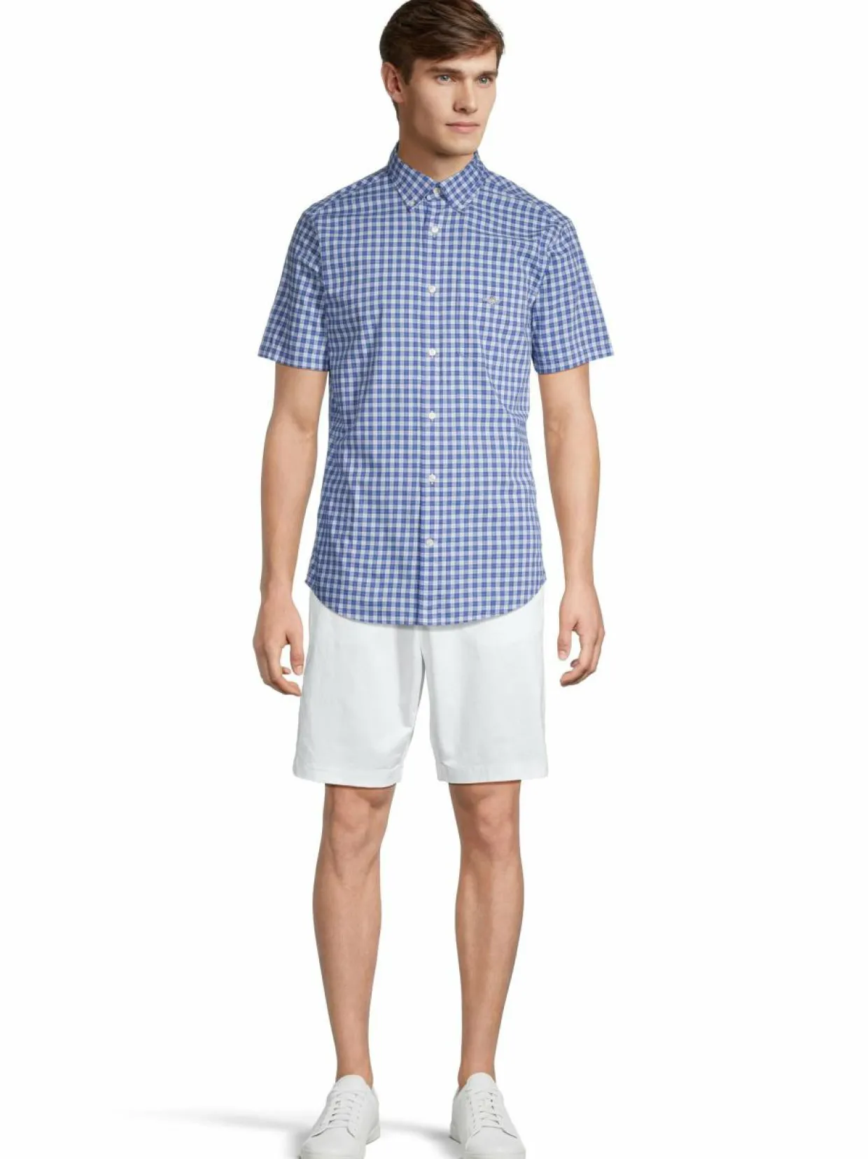 GANT vaatemerkin lyhythihainen kauluspaita ruutukuosissa. Siinä on mukava nappikaulus ja rintatasku logokirjailulla. Tämä kauluspaita on suunniteltu normaaliin regular fit -istuvuuteen ja valmistettu mukavasta puuvillapopliinista.