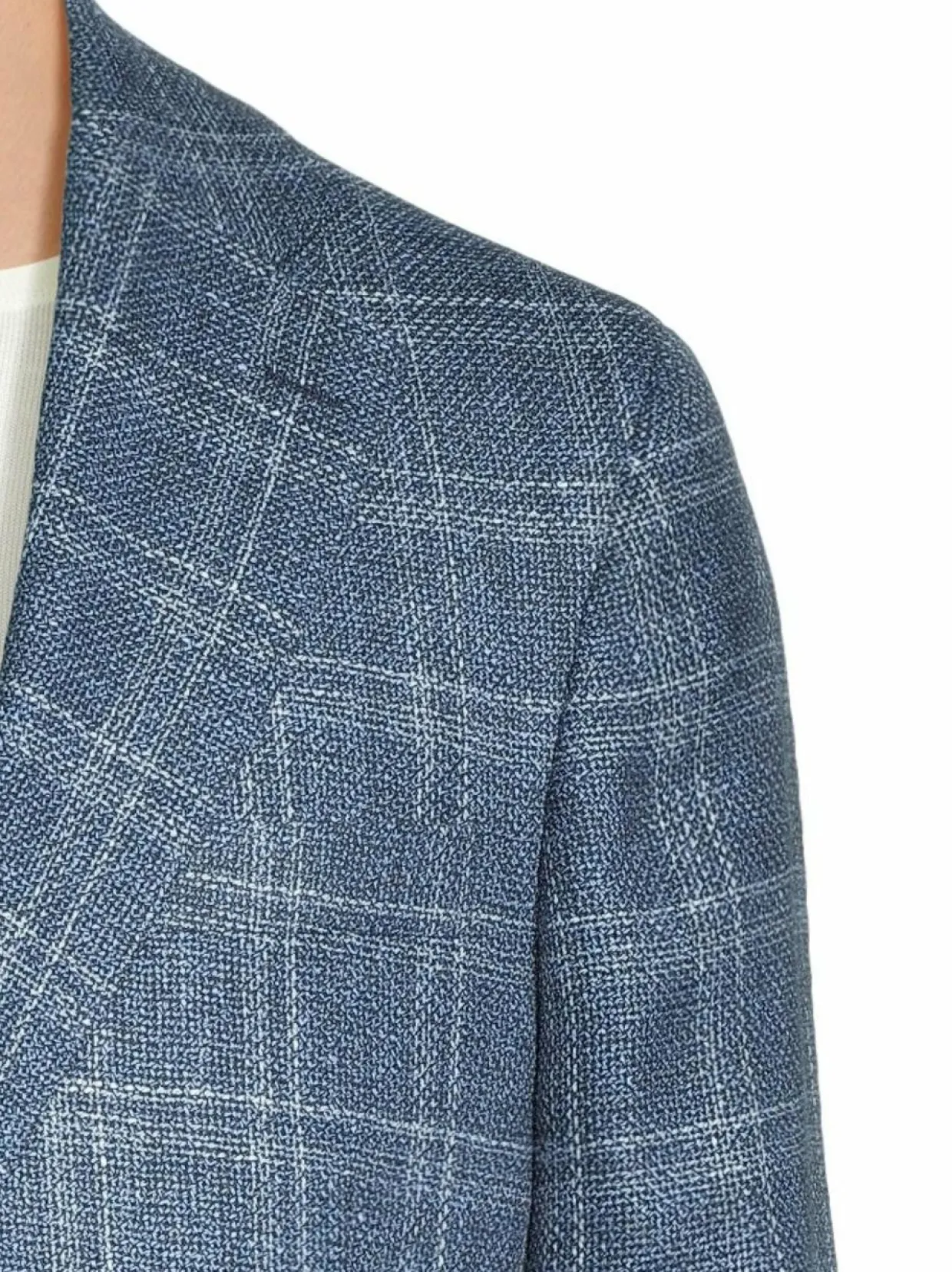 Oscar Jacobsonin Regular fit -bleiseri on valmistettu villa-pellavasekoitteesta. Siinä on ruutukuosi ja täysvuori. Mallissa on kaksi käsitaskua ja yksi rintatasku. Se on tyylikäs ja monipuolinen vaate, joka sopii useisiin tilaisuuksiin. Se on mukava ja hengittävä, joten se sopii täydellisesti kevään ja kesän lämpimämpiin päiviin.