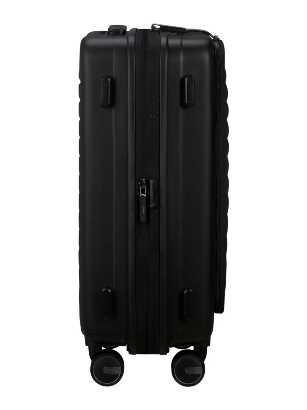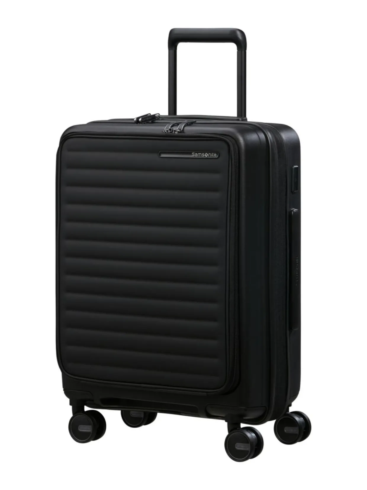 Samsonite Restackd -lentolaukku on valmistettu laadukkaasta ja kevyestä polypropeenista ja sen muotoilu varmistaa maksimaalisen tilan tavaroillesi. Saat eroteltua tavarasi taskullisella tilanjakajalla, pakkauskuutioilla ja säädettävillä henkseleillä. Tuplapyörät vähentävät ääntä ja tärinää, sekä takaavat, että laukun kanssa on mukava liikkua. 100% matkalaukun ulkokankaan, sisävuoren, sisäkuminauhan ja sisävetoketjun painosta sekä vähintään 90% ulkovetoketjun painosta ja vähintään 65% ulkokuminauhan painosta on valmistettu kierrätetystä PET-muovista. Tässä lentolaukussa on kätevä edestä avattava tasku 15.6 tietokoneelle sekä laajennusosa.