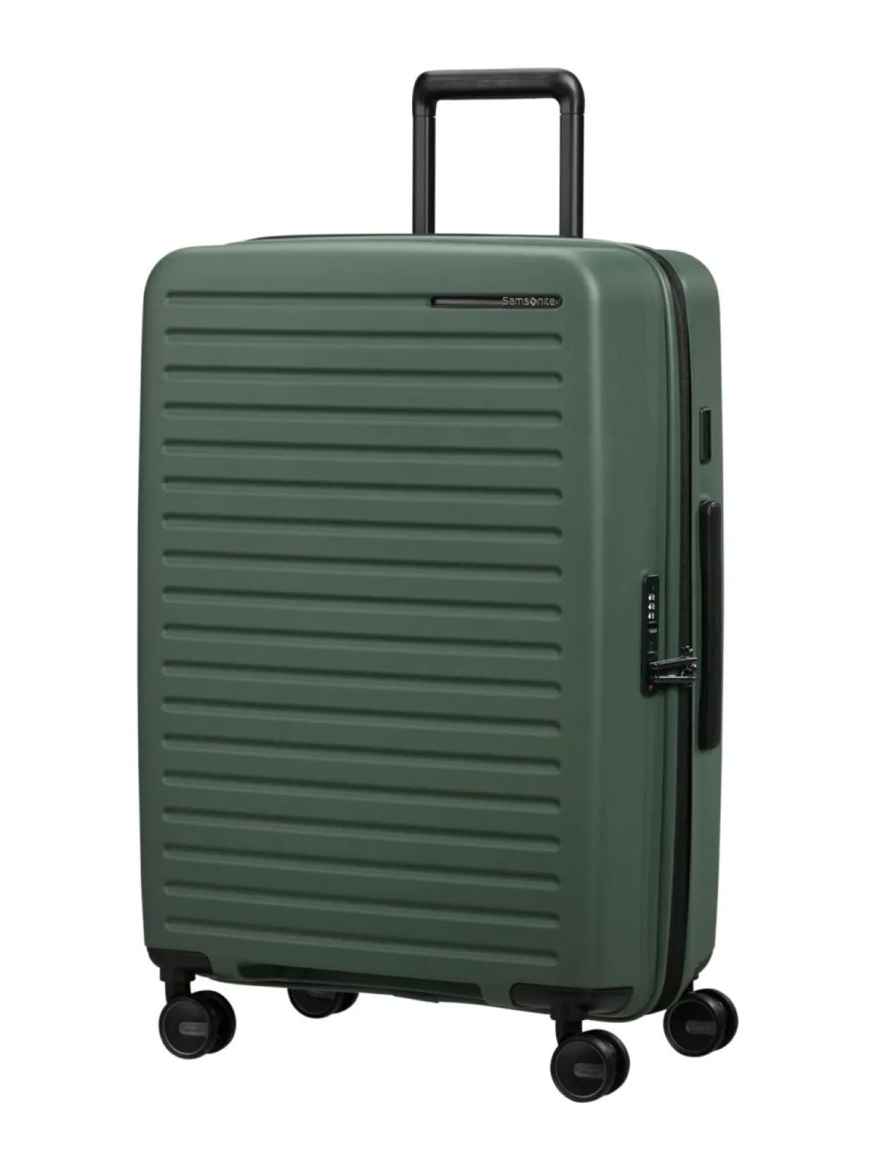 Samsonite Restackd -matkalaukku on valmistettu laadukkaasta ja kevyestä polypropeenista ja sen muotoilu varmistaa maksimaalisen tilan tavaroillesi. Saat eroteltua tavarasi taskullisella tilanjakajalla, pakkauskuutioilla ja säädettävillä henkseleillä. Laukussa on lisätilaa tuova laajennusosa. Tuplapyörät vähentävät ääntä ja tärinää, sekä takaavat, että laukun kanssa on mukava liikkua. 100% matkalaukun ulkokankaan, sisävuoren, sisäkuminauhan ja sisävetoketjun painosta sekä vähintään 90% ulkovetoketjun painosta ja vähintään 65% ulkokuminauhan painosta on valmistettu kierrätetystä PET-muovista.