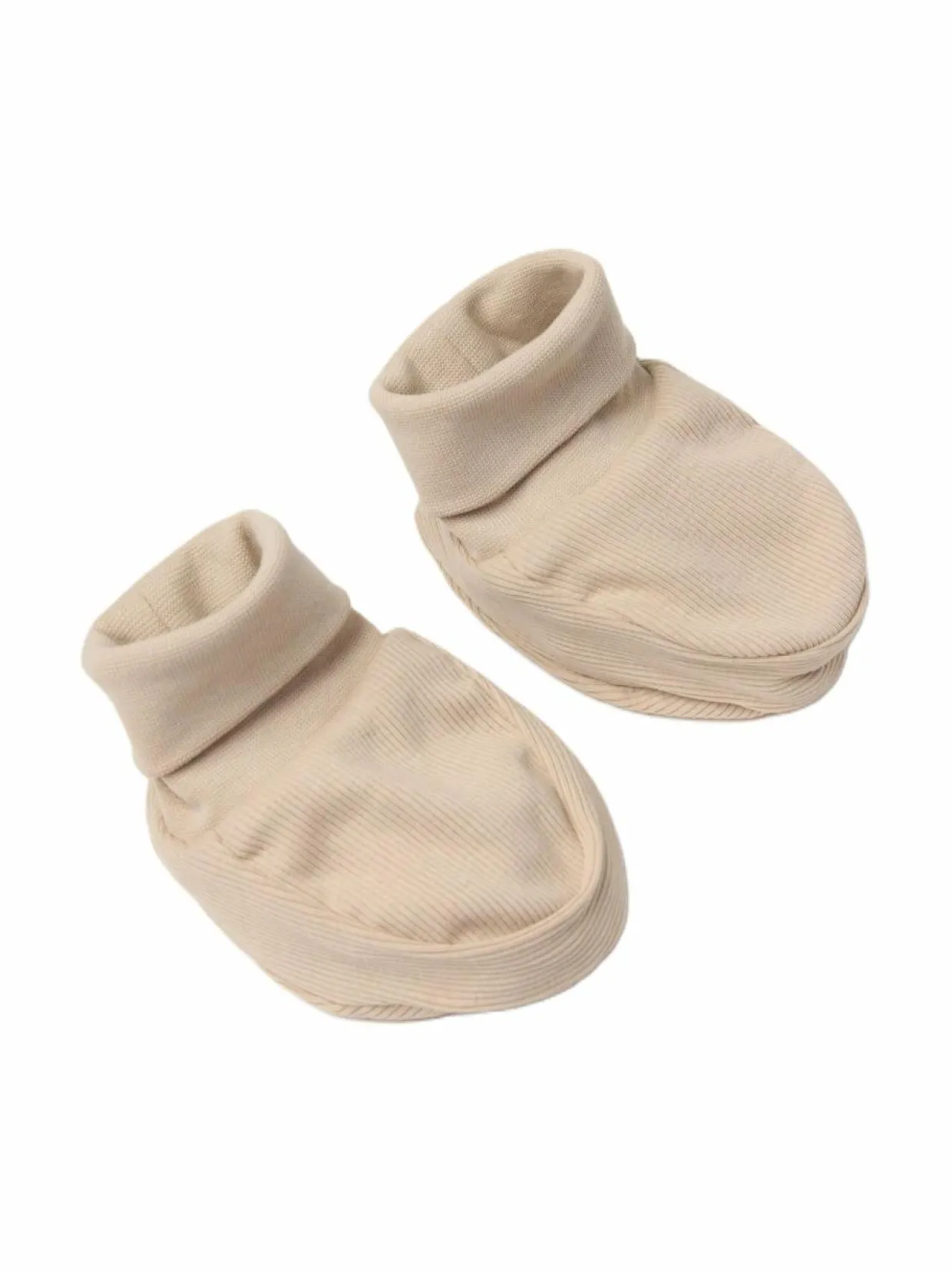 Lindexin tossut vastasyntyneille on valmistettu pehmeästä puuvillasta, johon lisää mukavuutta ja joustoa ripaus elastaania. Tossuissa on käännettävät reunukset.