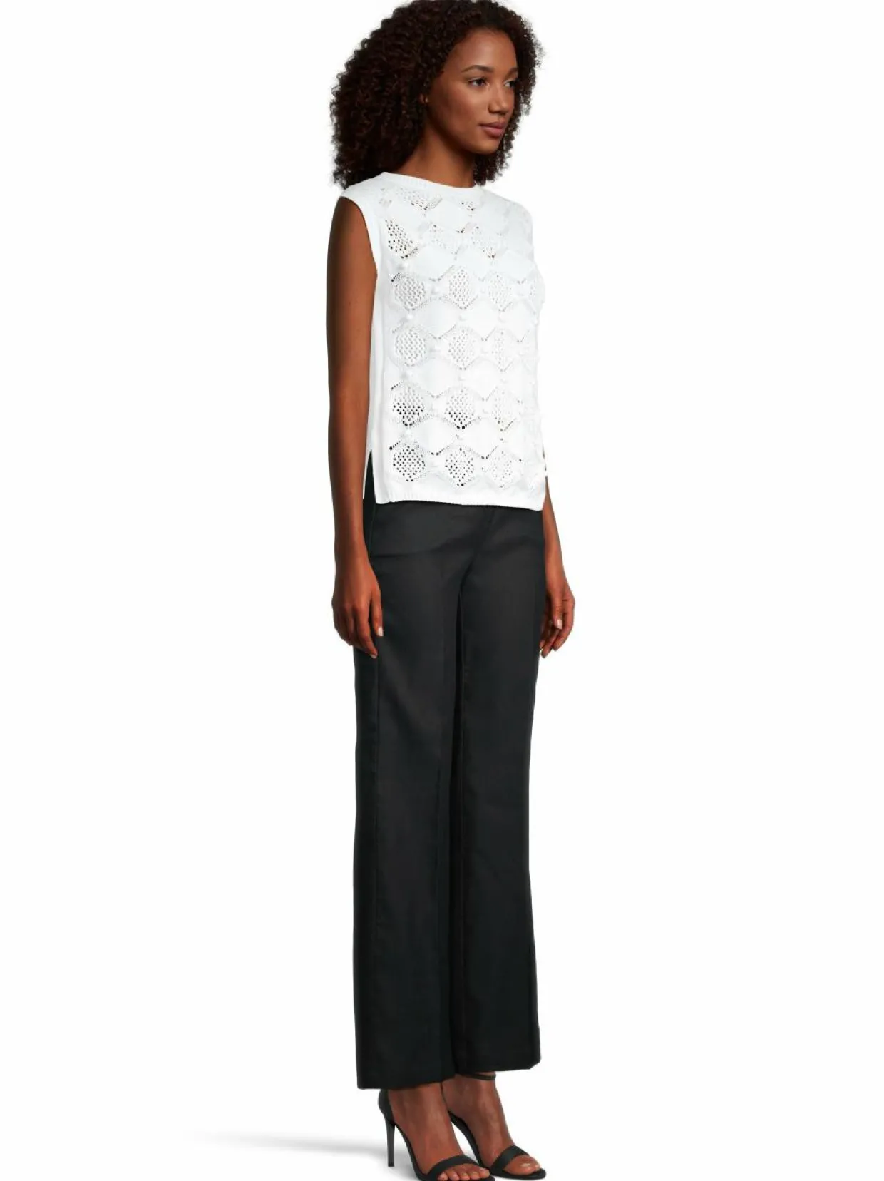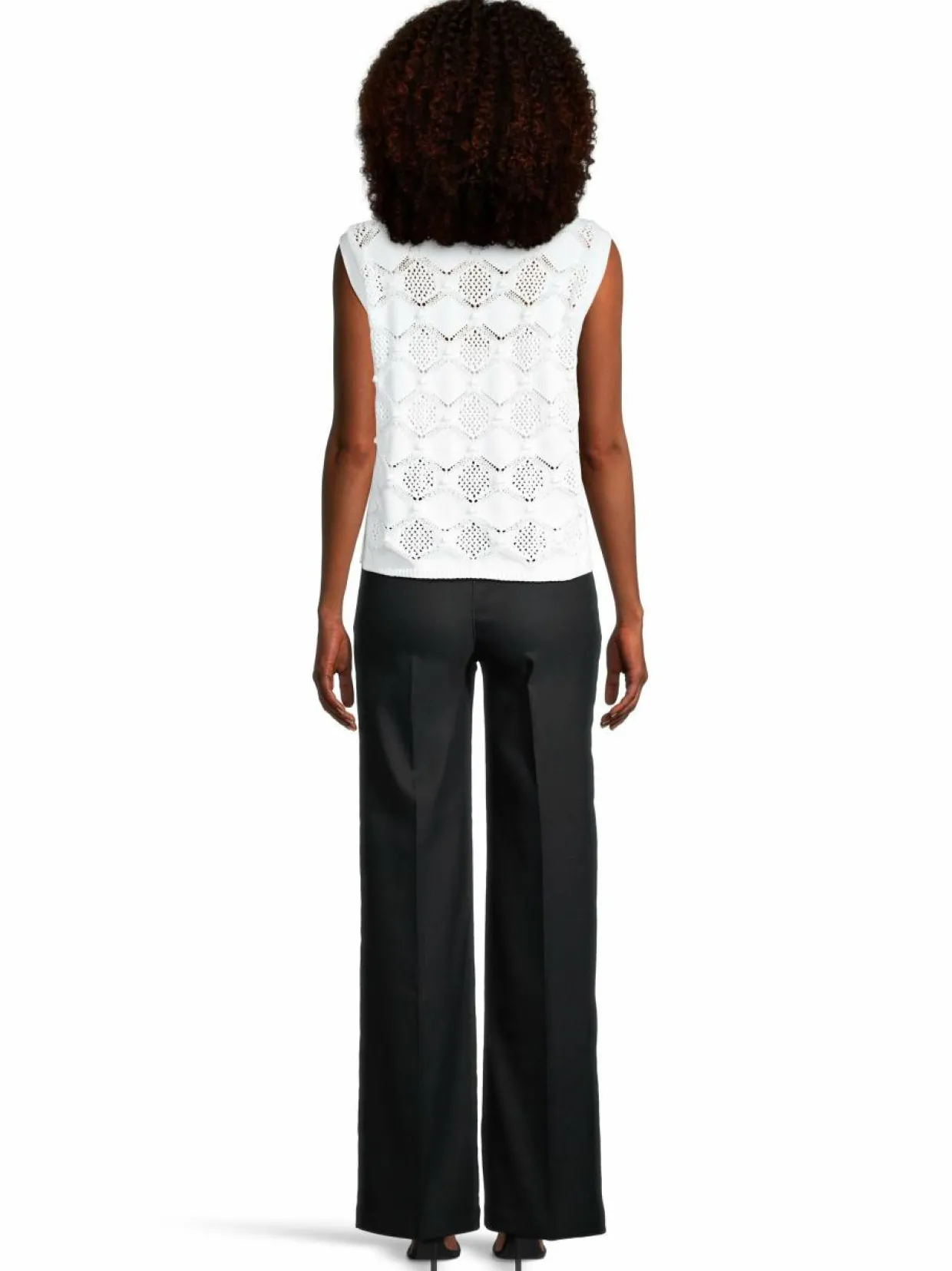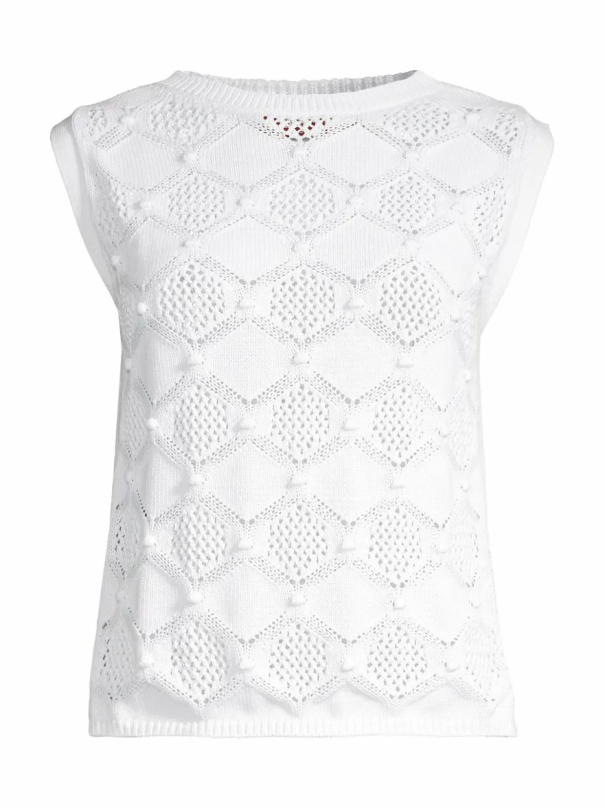 Materiaali92 % puuvilla, 8 % polyesteri Hoito-ohjeetKonepesu 30 °C ValmistusmaaRomania Väri001 WEISS Avainsanatneule, neuleliivi, toppi, läpikuultava neule, kuvioneule, neulepusero, Max Mara Studio