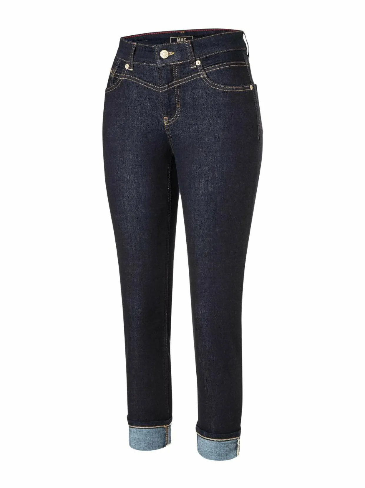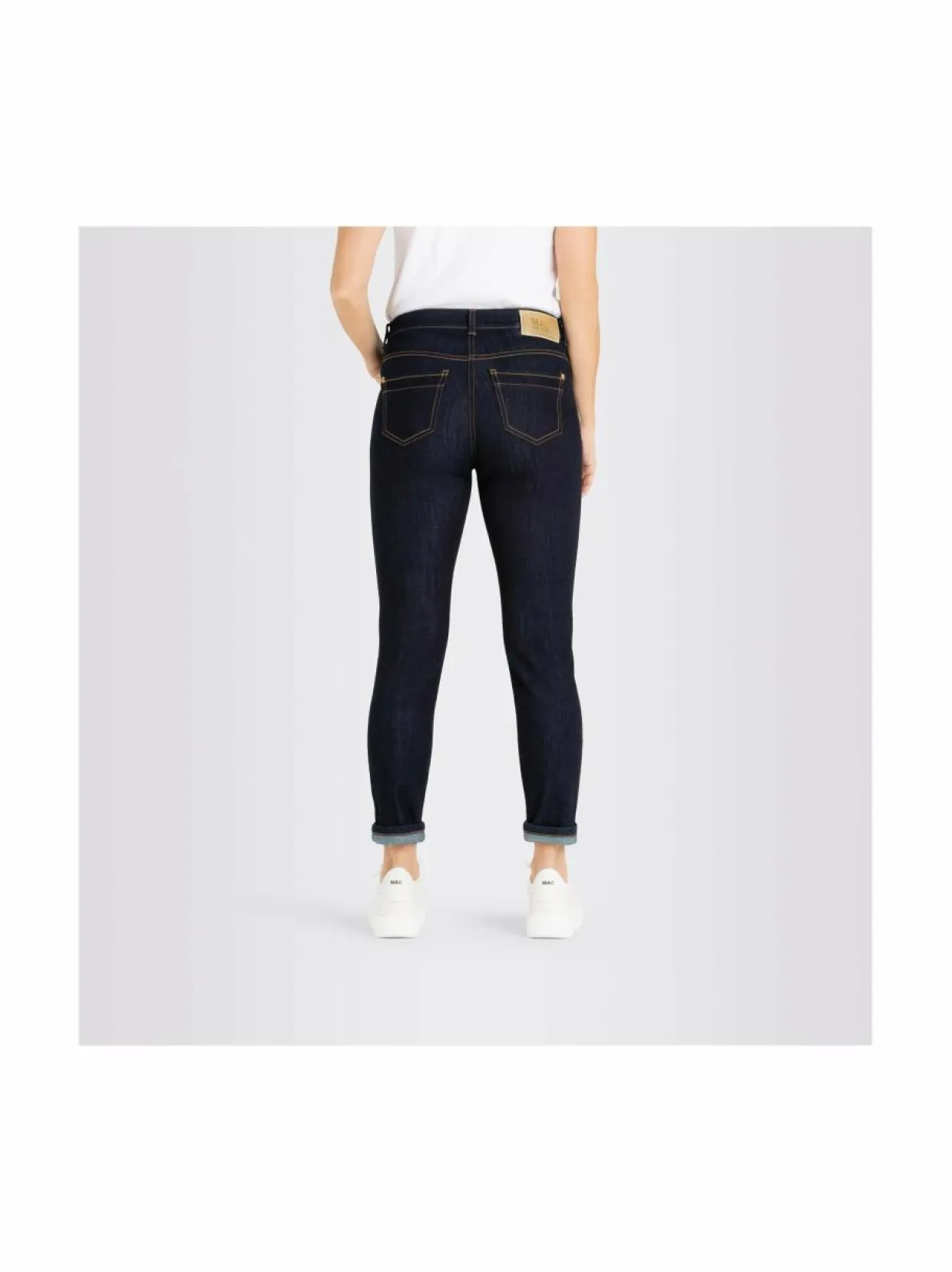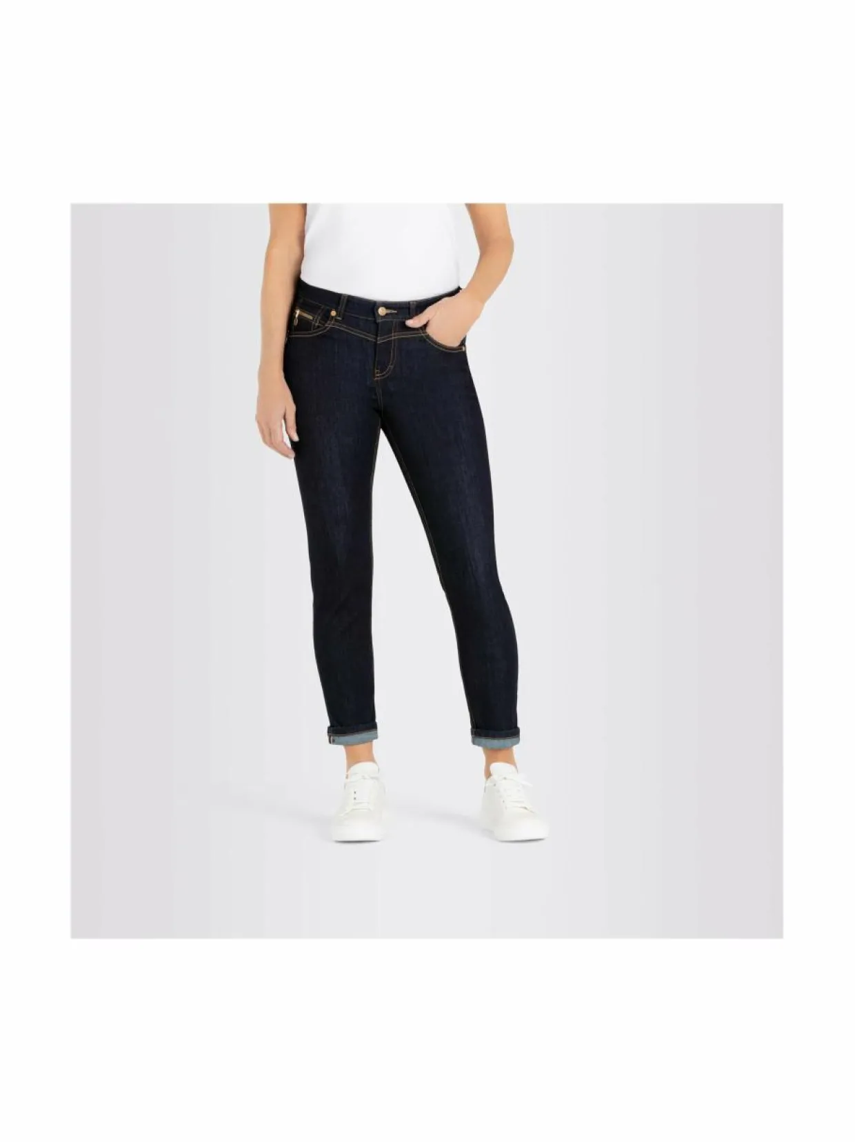 Mac Jeans Rich Slim Light Authentic -farkkuja tyylittävät kontrastiväriset tikkaukset ja vetoketjullinen kolikkotasku. Farkuissa on normaalikorkuinen vyötärö ja kapeat lahkeet. Edessä on viistot avotaskut, takana päällitaskut.