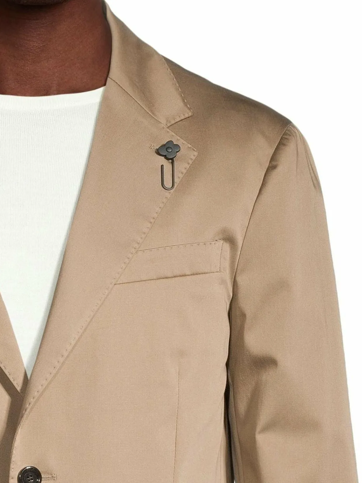 Tämä italialaisen Lardini-merkin Roma-bleiseri on yksirivinen takki, jossa on näyttävä sävy ja hienostunut kiiltäväpintainen puuvillakangas. Bleiserissä on kaksi nappia ja klassinen kaulus. Avonaiset sivutaskut sekä sivuhalkiot takana lisäävät hienostuneita yksityiskohtia. Roma-bleiserissä on ainutlaatuinen kangas, joka joustaa hieman, lisäten käyttömikavuutta. Valmistettu miellyttävästä ja ihoystävällisestä puuvillasta, jossa on ripaus joustavaa elastaania. Lisäksi, bleiserissä on normaali mitoitus ja tyylin viimeistelee kukkaneula-yksityiskohta kauluksesssa.