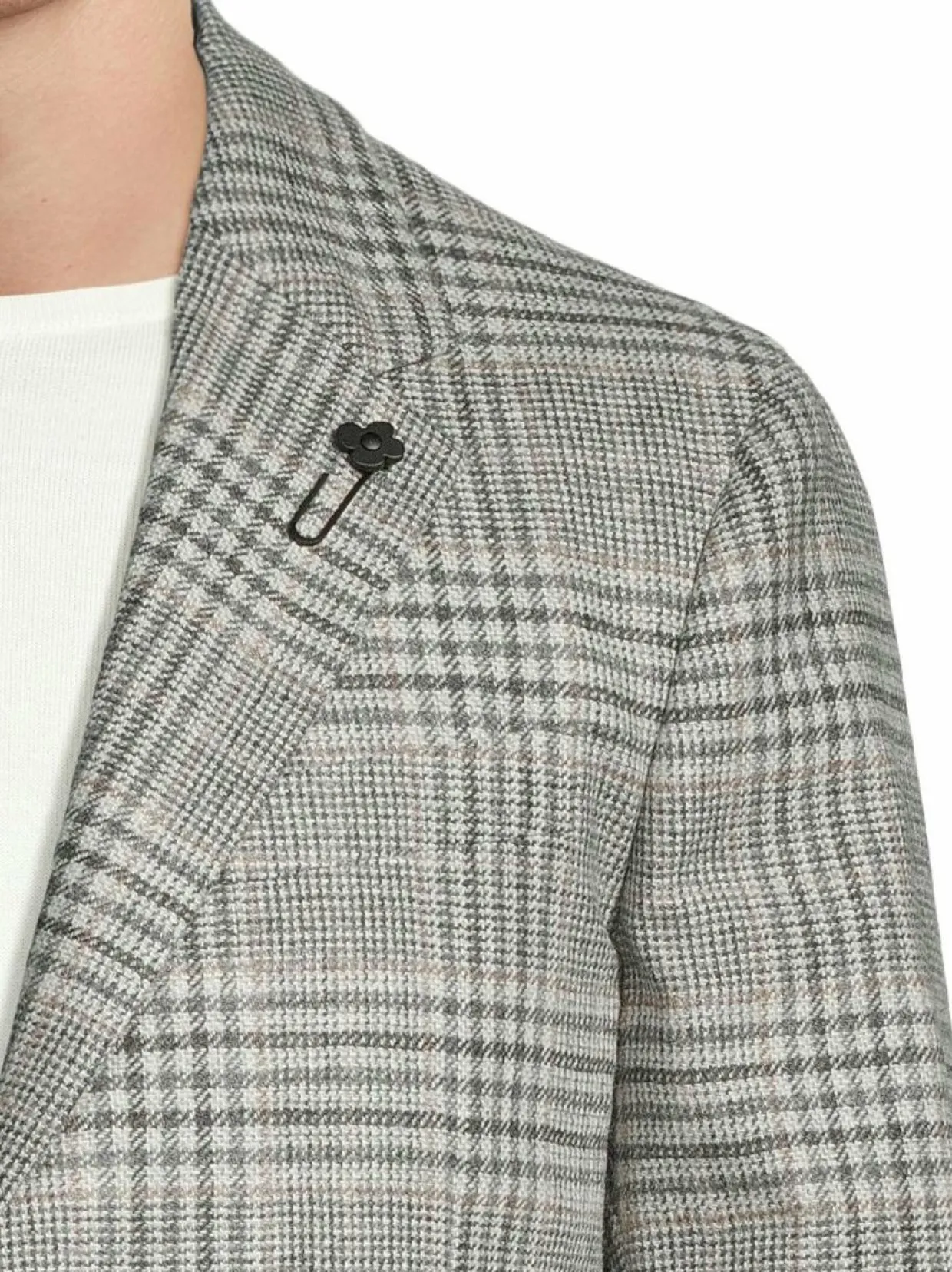 Materiaali94 % villa, 6 % kashmir PesuohjeetKemiallinen pesu Väri920GR GREY Avainsanatruudullinen, takki, villatakki, bleiseri, Lardini, miesten takki, puvuntakki