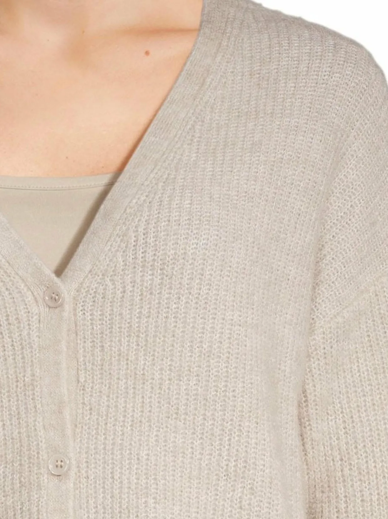 Sade-neuletakki on suunniteltu tarjoamaan lämpöä ja mukavuutta. Sen pehmeä pinta ja rento istuvuus tekevät siitä täydellisen valinnan arkeen. Neuleen materiaali on sekoitus villaa, polyamidia, mohairia ja elastaania, mikä antaa sille sekä kestävyyttä että miellyttävää tuntua iholla. Mohairin ansiosta neuleella on kaunis kiilto ja se tuntuu ylellisen pehmeältä. Ribbineulos antaa sille klassisen ilmeen, ja v-pääntie lisää sen monikäyttöisyyttä. Neule on ihanteellinen kerrospukeutumiseen.