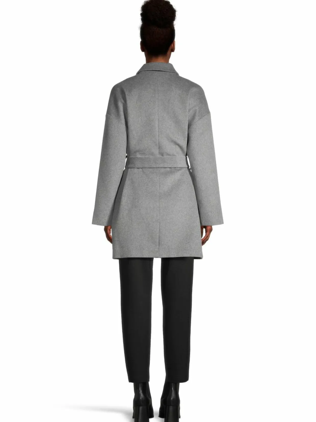 Tämä villakangastakki huokuu ajatonta eleganssia. Kaksirivinen nappikiinnitys ja vyöllä korostettu vyötärö tekevät tästä takista elegantin valinnan viileämpiin päiviin. Laadukkaasta villakankaasta valmistettu takki tarjoaa miellyttävän lämmön ja kestävyyden, pitäen samalla tyylin huoliteltuna.