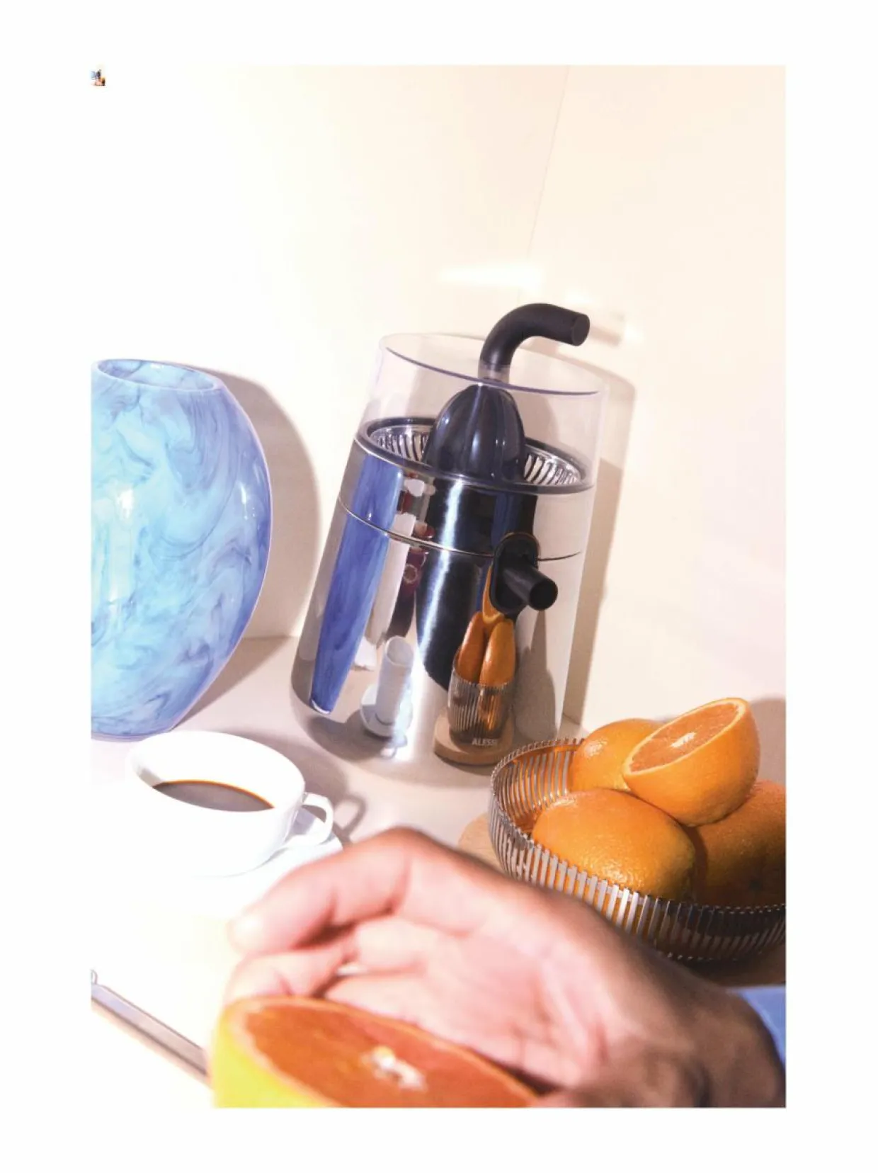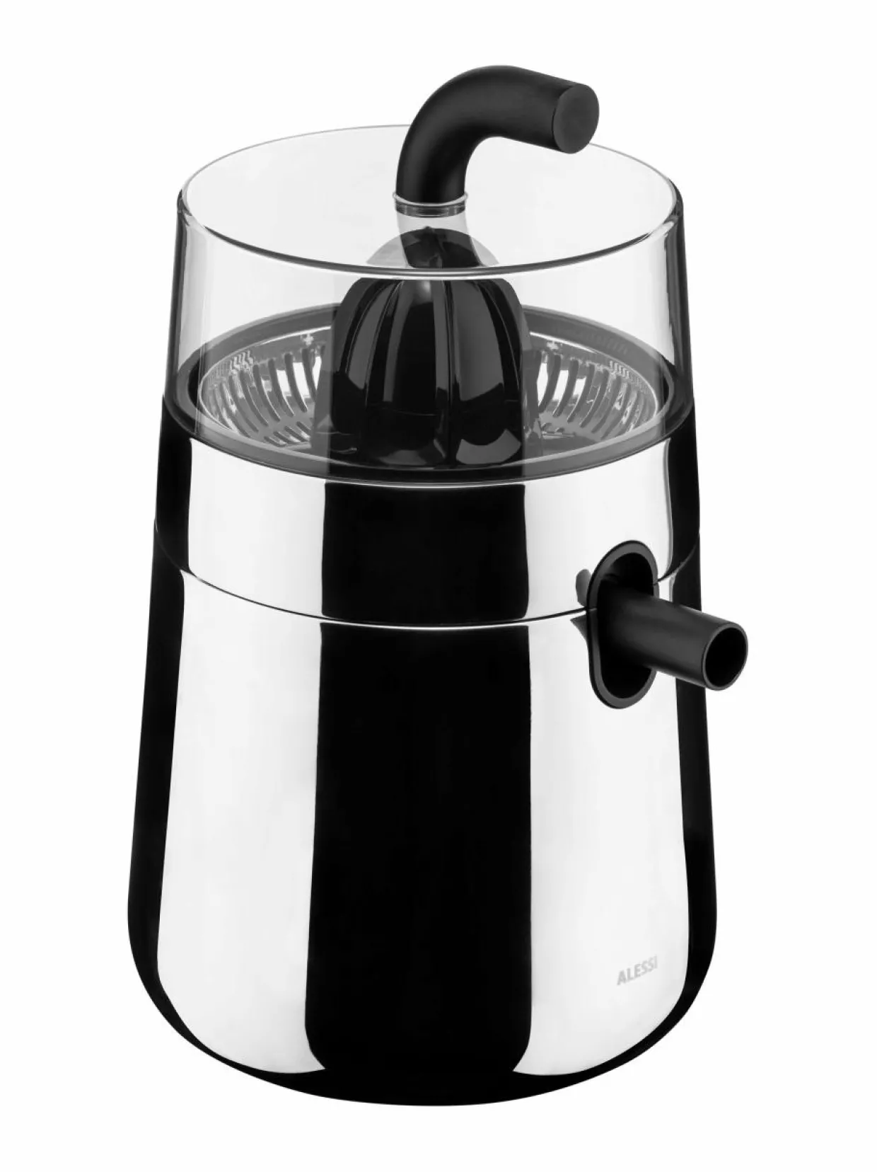 Alessin sähköinen sitrusnpuristin on valmistettu ruostumattomasta teräksestä ja termoplastisesta hartsista. Tehokkaan kierron ansiosta se puristaa sitruunat täydellisesti hetkessä. Puristimessa on kätevä kaatonokka, ja se on myös helppo koota ja puhdistaa.