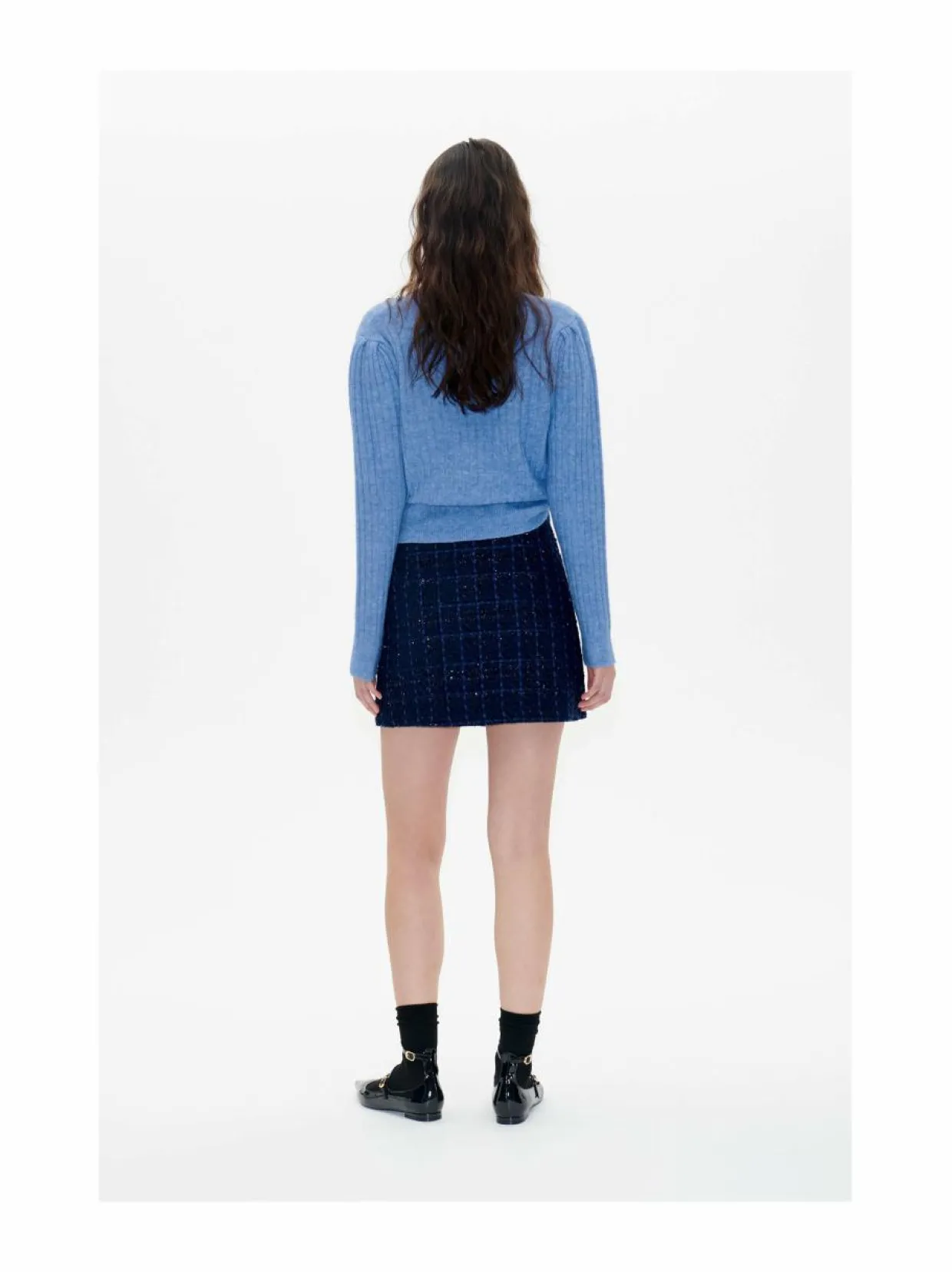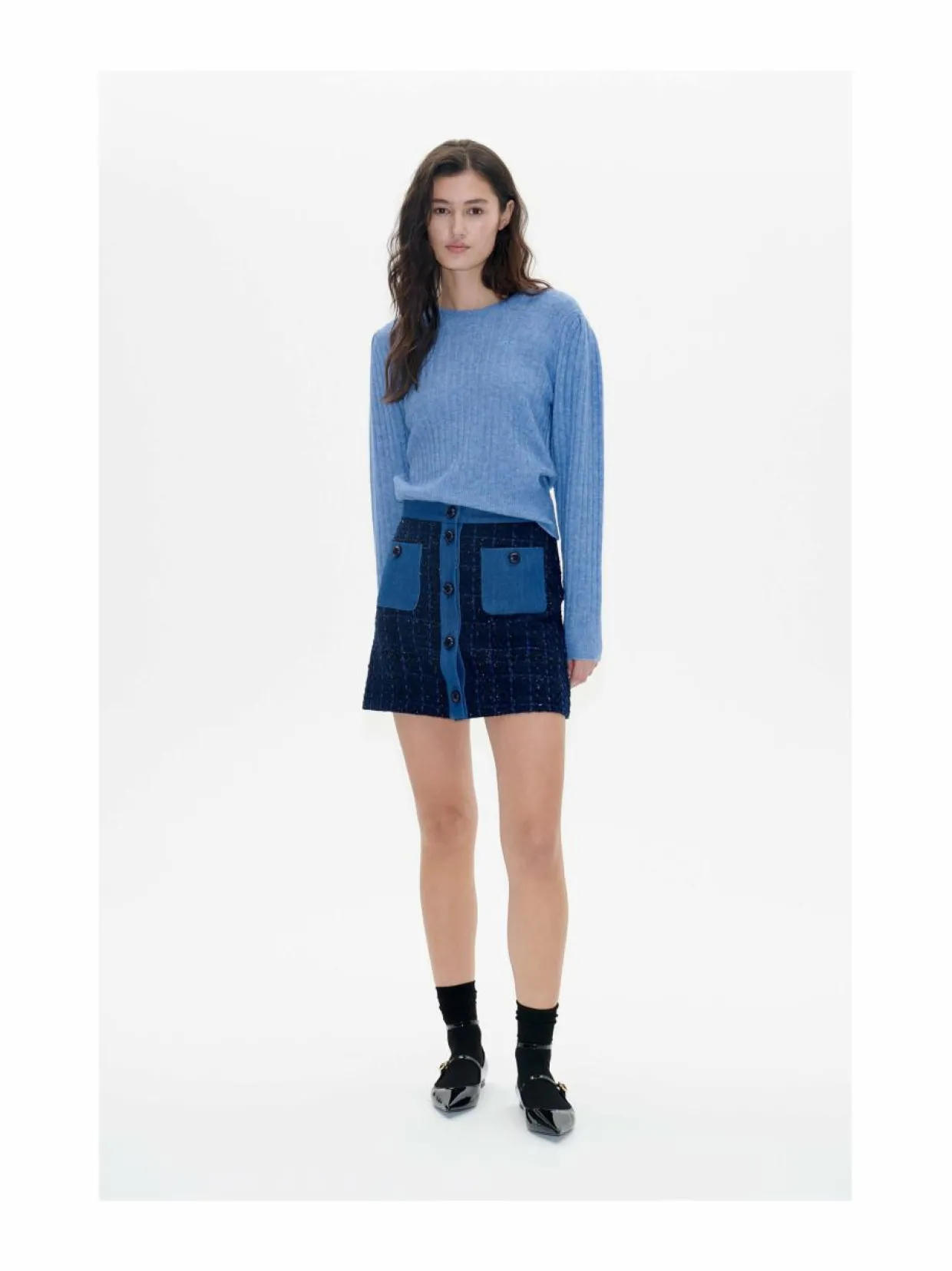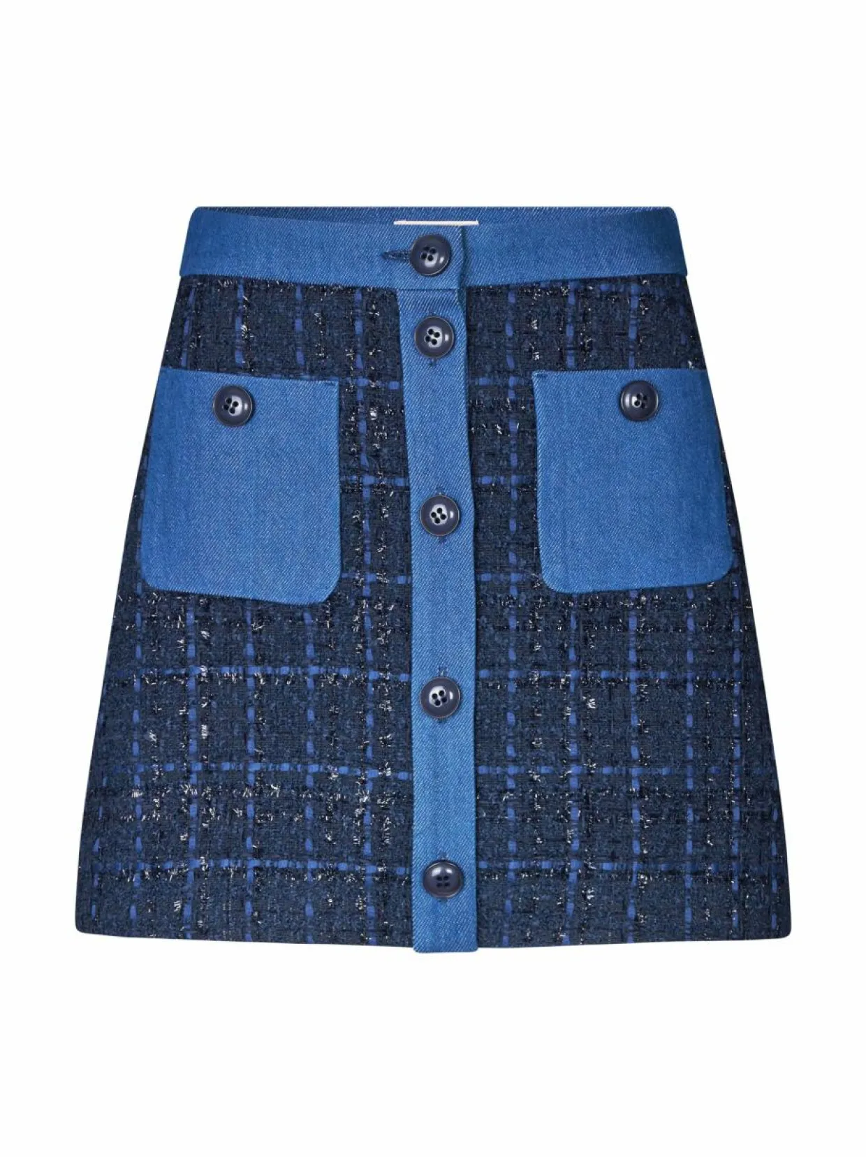 Baum und Pferdgarten Salme-hame henkii ajatonta eleganssia. Yksityiskohtana näyttävät yhteensopivat napit. Hame on minimittainen ja hieman A-linjainen. Materiaaliyhdistelmään on lisätty myös lämmittävää villaa. Sisäpuolelta löytyy silkkimäinen vuori. Yhdistä hame esimerkiksi neuleen ja nilkkureiden kanssa.