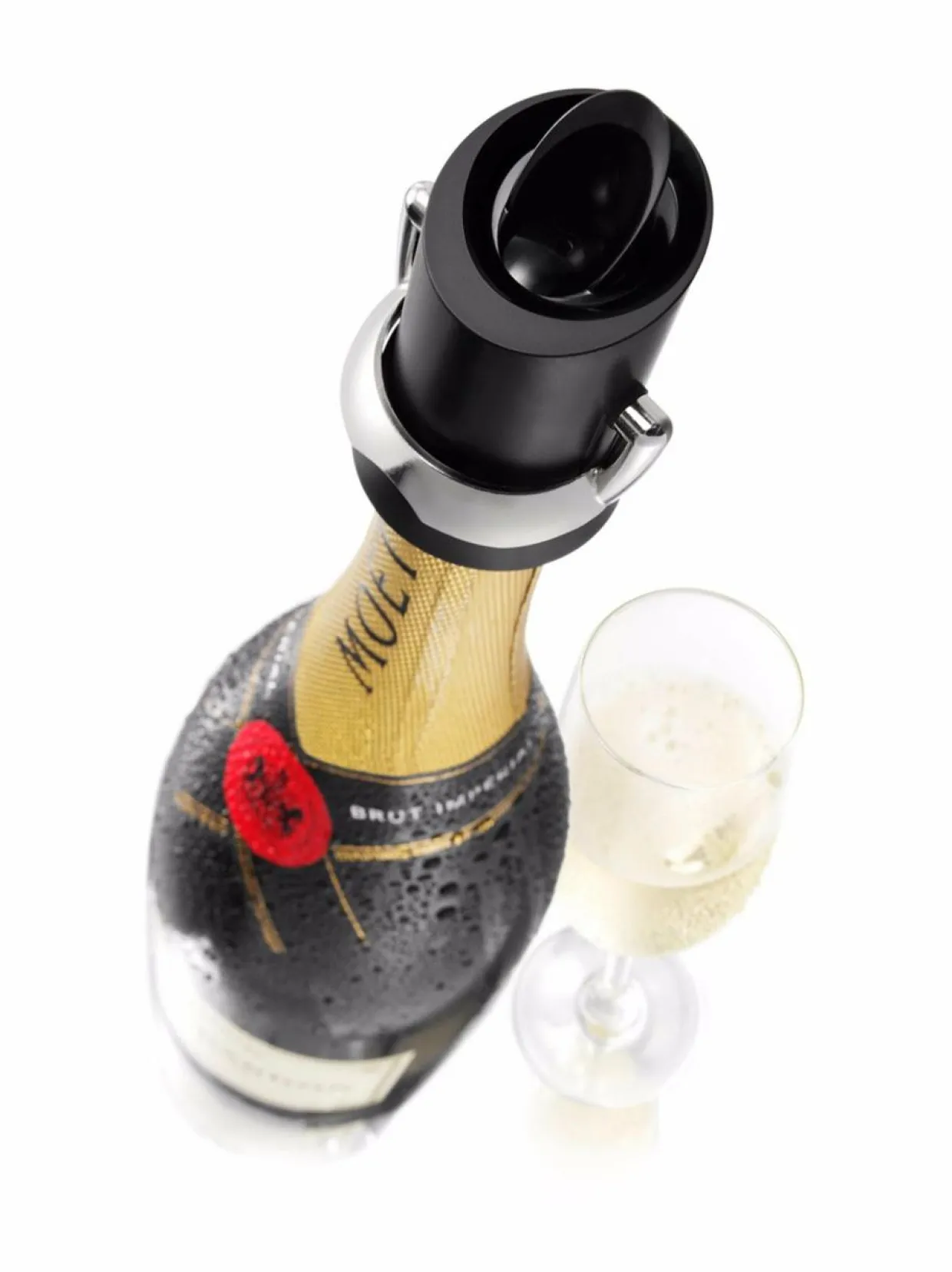 Kätevän samppanjakorkin avulla saat kaiken irti arvokkaasta juomastasi: samppanjakorkki suojelee samppanjan makua ja kuplia, varjelee juomaa pullon avaamisen jälkeen sekä auttaa juoman kaatamisessa laseihin. Samppanjakorkki on konepesunkestävä ja sopii suurimpaan osaan erilaisista samppanjapulloista.