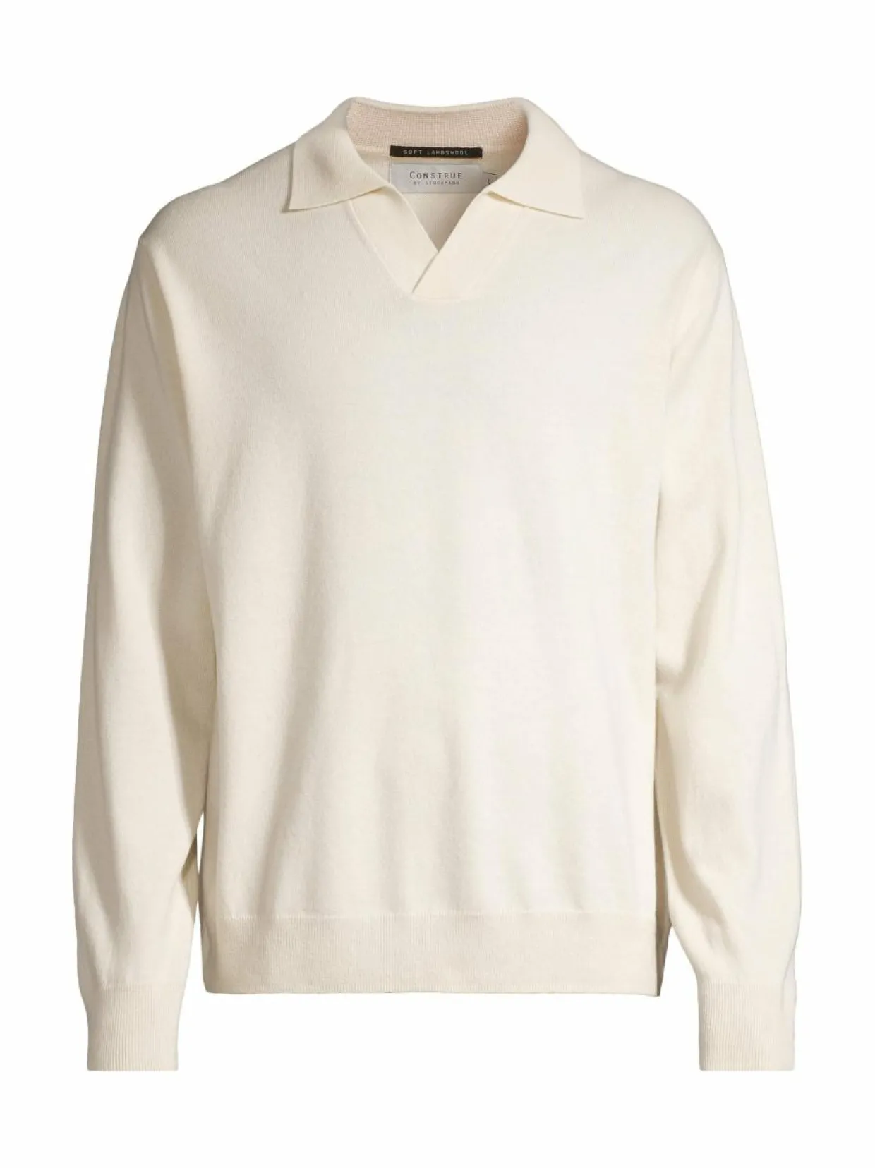 Construen Sandford-neule on 100 % villaa. Neuleessa on pikeepaidan ominaisuuksia, kuten v-leikkaus ja pikeekaulus pääntiessä. Hihansuissa ja helmassa on joustinneuleresorit.