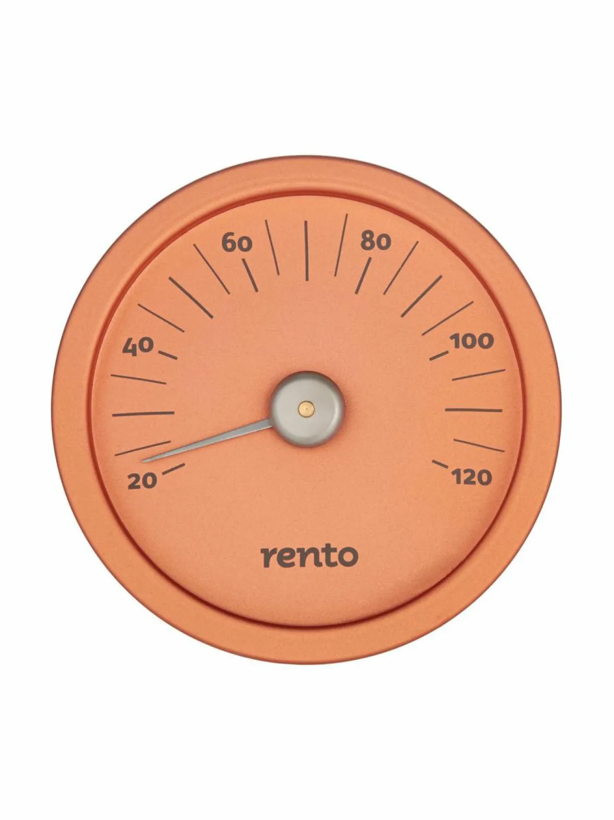 Moderni, Suomessa suunniteltu saunan lämpömittari on materiaaliltaan värilliseksi anodisoitua alumiinia. Tyylikäs design-saunamittari täydentää liekinpunaisten alumiinituotteiden sarjaa. Celsiusasteet.