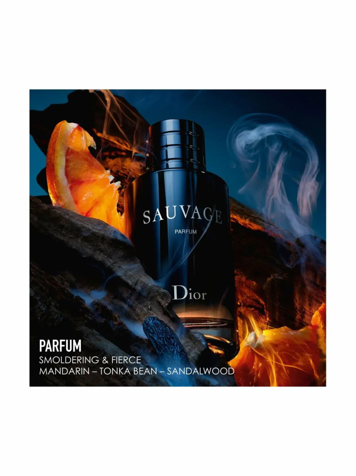 Sauvage Parfum -tuoksu on tiivistetty tulkinta Sauvage-tuoksusta, yhdistäen äärimmäisen raikkauden lämpimiin meripihkan sävyihin ja eläimelliseen kauneuteen, joka herää eloon iholla.Dior haki tuoksuun innoitusta koskemattomasta erämaasta tummansinisen yötaivaan alla ja rätisevän nuotion ilmaan nousevista voimakkaista tuoksuista. Tuoksussa erottuvat mandariinin, tonkapavun ja santelipuun vivahteet.Sauvage Parfum on uuden rajaseudun tuoksu, tulkinta, joka on juovuttava ylistys autioiden erämaiden tenholle.