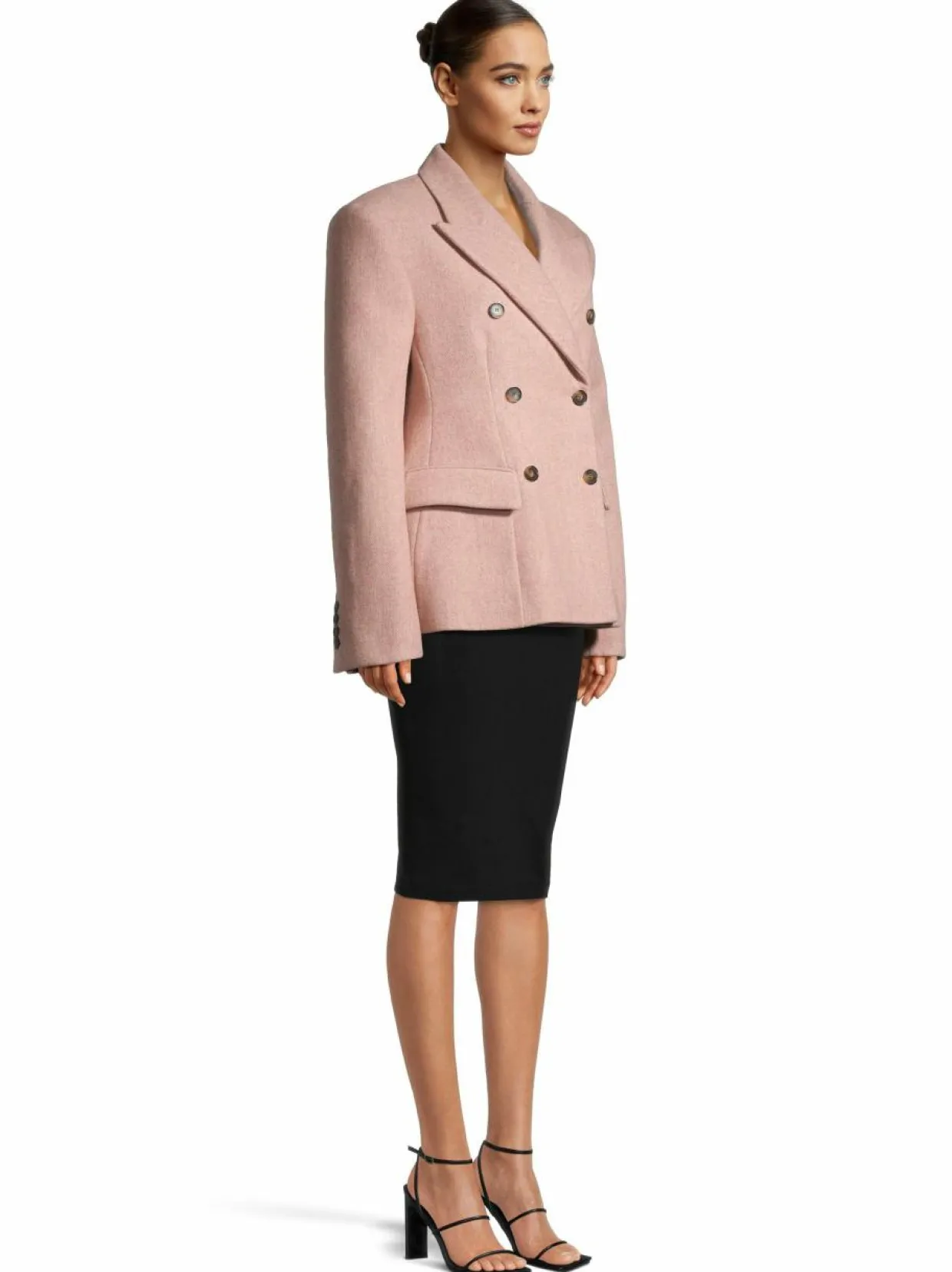 Savile Row:n perinteistä räätälöintiä kunnioittava bleiseri on valmistettu RWS-sertifioidusta villasta, mikä tekee siitä ylellisen valinnan. Huolellisesti muotoiltu, kaksirivinen bleiseri korostaa vyötäröä imartelevalla leikkauksellaan ja luo ryhdikkään ja klassisen siluetin. Bleiserissä on lovikaulus, läppätaskut ja rintatasku.