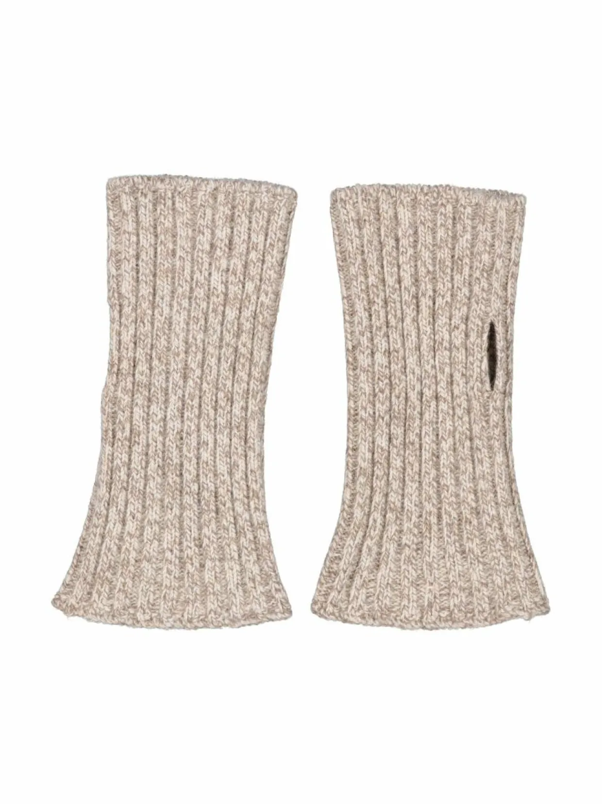 Pehmeän tuntuiset ranteensuojat ribatulla tekstuurilla. Yksityiskohtana kätevät peukalonreiät. Materiaalina on käytetty miellyttävän tuntuista merinovillan ja kashmirin yhdistelmää. Valikoimasta löydät myös yhteensopivan huivin sekä neulepipon.