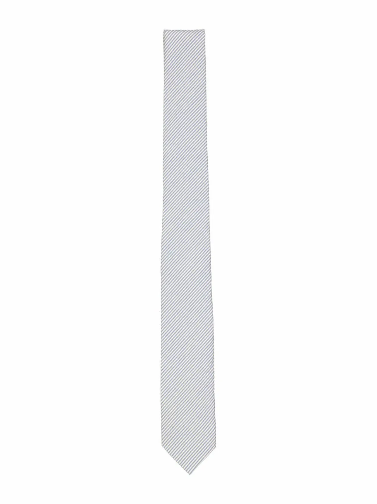 Gantin 100 % silkistä valmistetussa solmiossa on seersucker-raitakuosi. Säädettävässä solmiossa on regular fit -mitoitus ja terävä kärki.