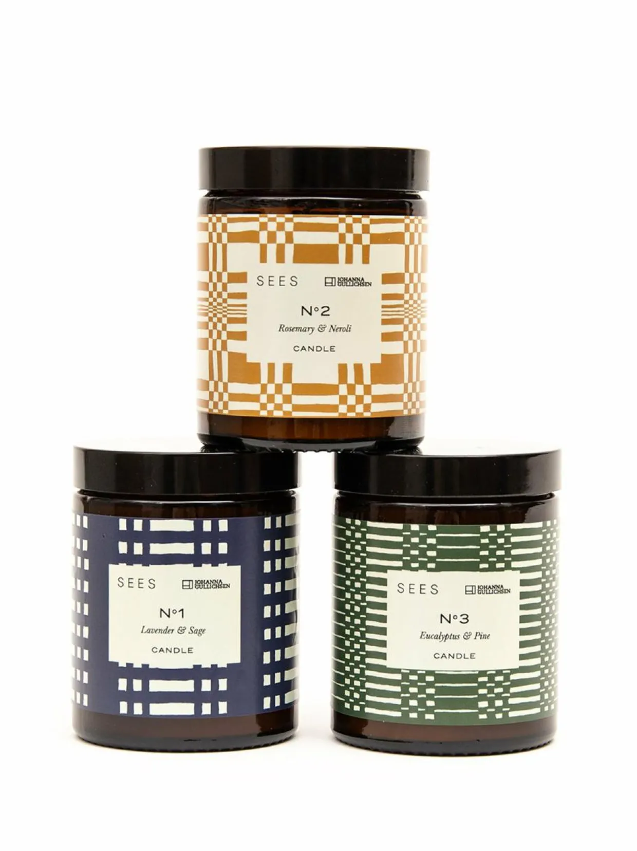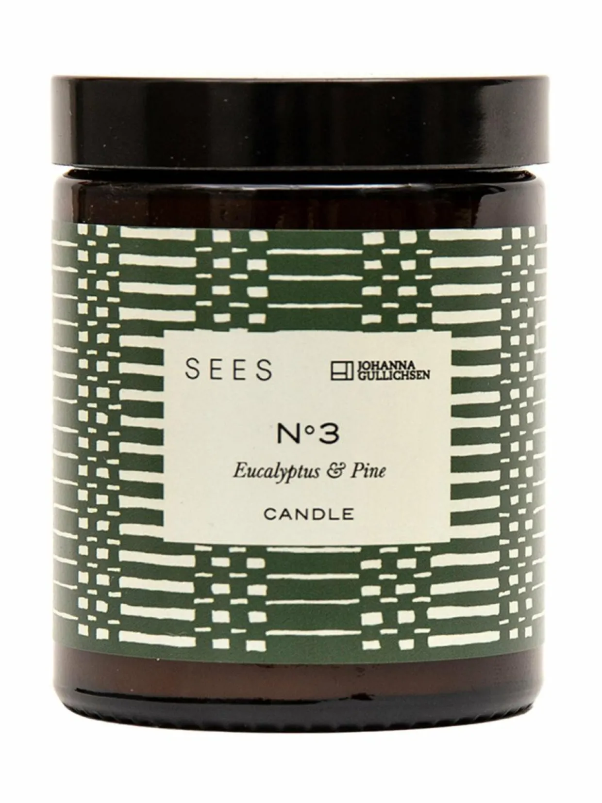 SEES x Johanna Gullichsenin No. 3 Eucalyptus & Pine on tyylikäs ja ainutlaatuinen kynttilä, joka on valmistettu luonnollisista ainesosista. Kynttilän tuoksu on raikas ja miellyttävä, ja se luo kotiin tunnelmaa ja rauhaa. Kynttilä on pakattu kauniiseen lasipurkkiin, joka sopii täydellisesti lahjaksi. Kynttilä on valmistettu soijavahasta ja se on käsintehty Suomessa. Kynttilästä on olemassa kolme eri tuoksuversiota: Laventeli ja salvia, rosmariini ja neroli sekä eukalyptus ja mänty.