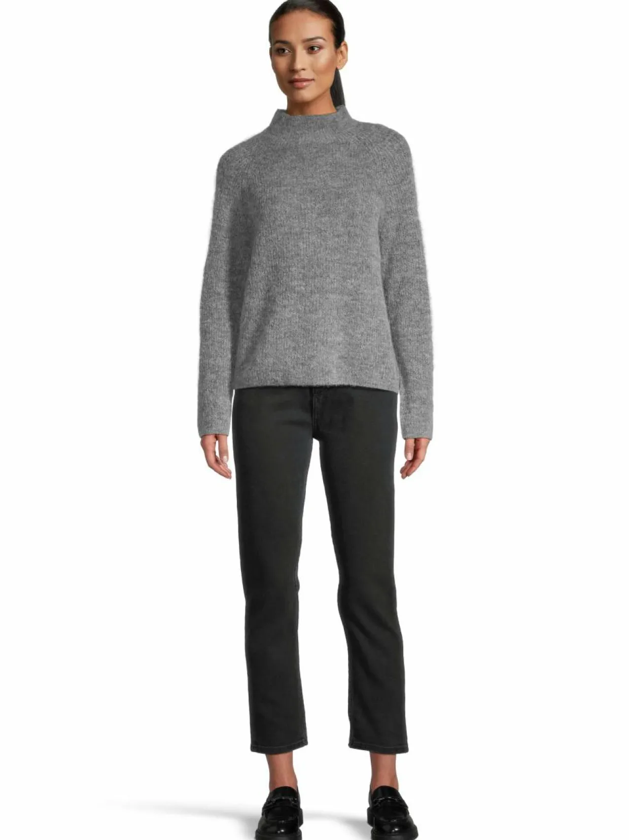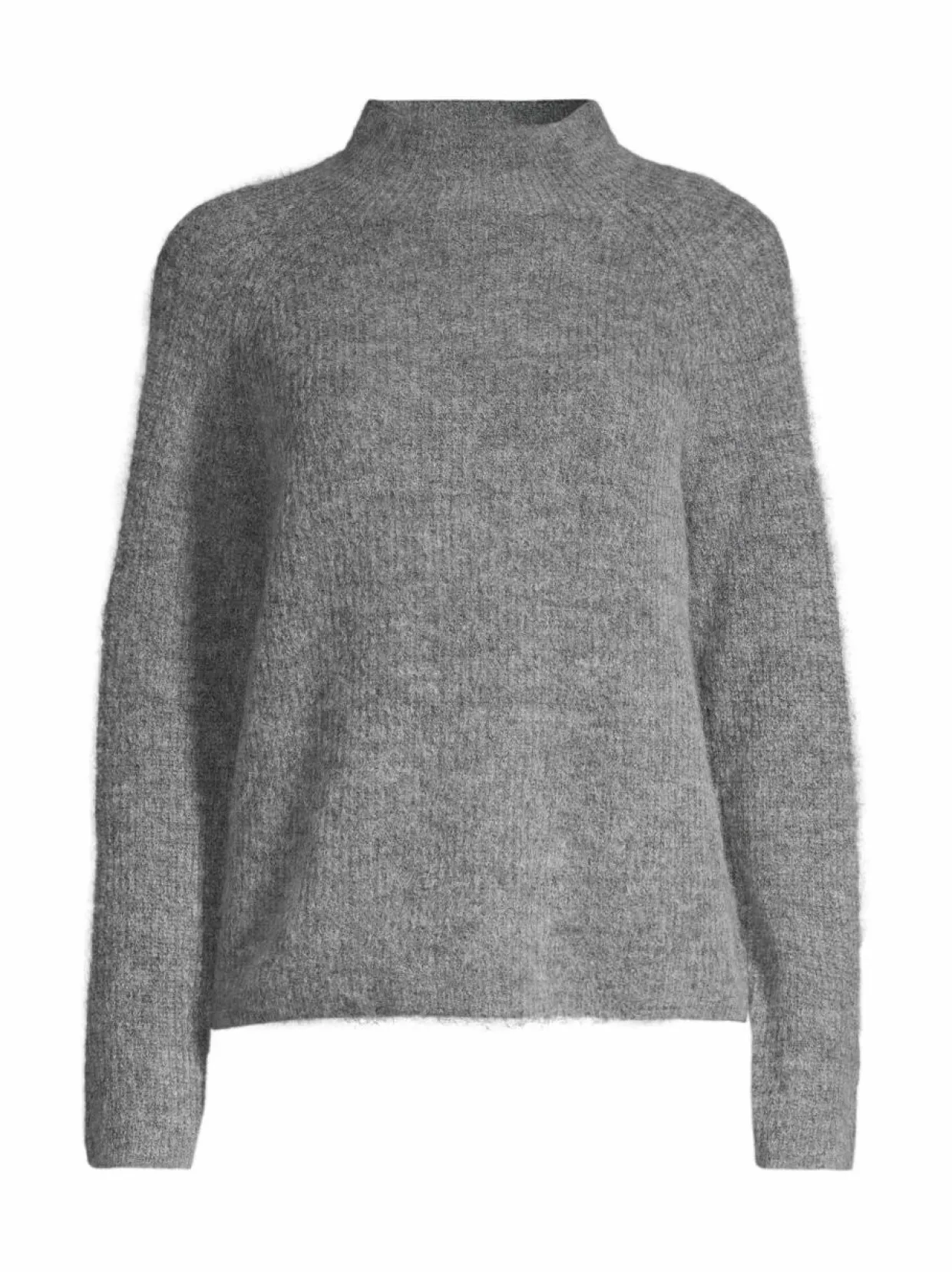 Tämä neule on suunniteltu lämmittämään ja tarjoamaan mukavuutta. Neuleessa on korkea pääntie ja pitkät hihat, jotka luovat ajattoman ja käytännöllisen ilmeen. Mohairin ja villan sekoite antaa neuleelle ilmavan ja lämpimän tunnun. Materiaali on pehmeää ja miellyttävää ihoa vasten.